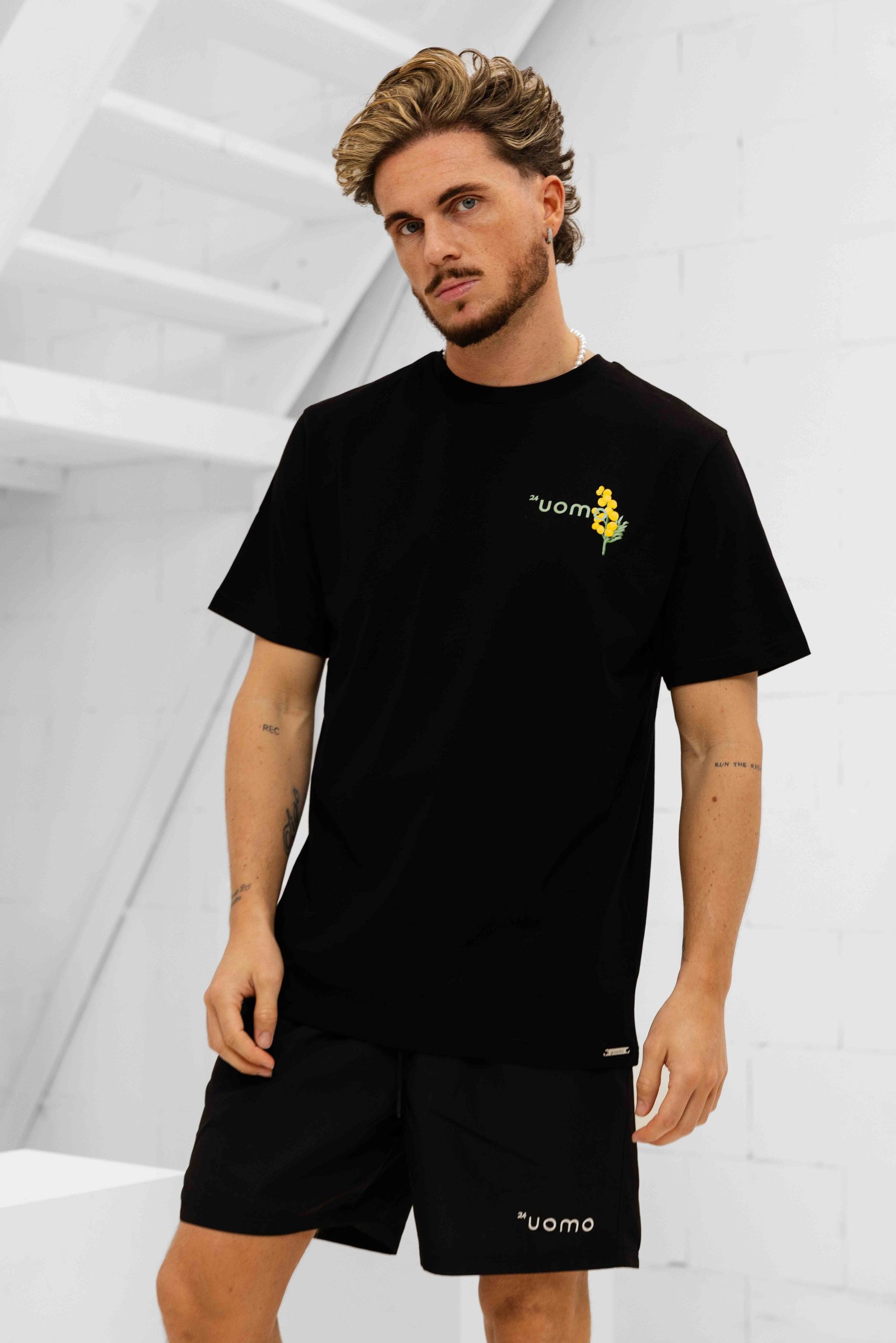 De 24 Uomo Flower Zomerset voor heren in zwart is het perfecte kledingstuk voor de lente en zomer. Deze zomerset bestaat uit een comfortabel shirt met een ronde hals en korte mouwen, gemaakt van 100% katoen voor een ademend gevoel. De oversized pasvorm zorgt voor een relaxte en casual uitstraling. De zwembroek is voorzien van een effen patroon met een subtiele logoprint en heeft twee zijzakken voor extra gemak. Perfect voor een dagje uit of om in stijl over het strand te lopen. Met de 24 Uomo Flower Zomerset ben je altijd klaar voor elke gelegenheid.| Chemisch reinigen | Niet chemisch reinigen |