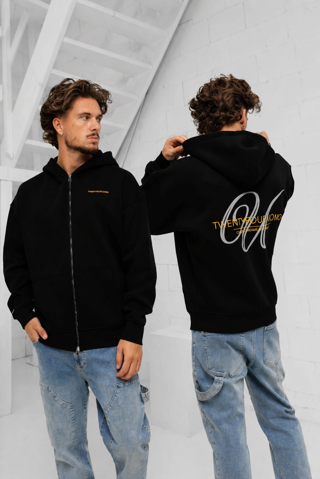 24 Uomo Initial Zip Hoodie Heren Black
