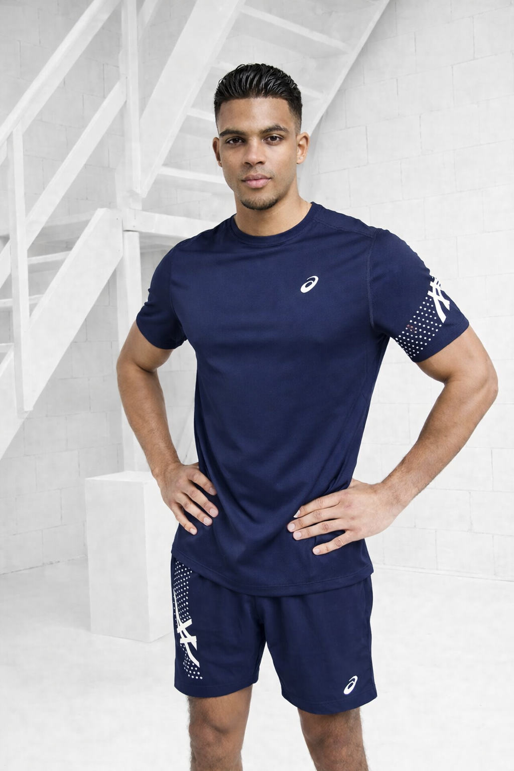 De Asics Icon Zomerset voor heren in donkerblauw is perfect voor de lente/zomer collectie. De set bestaat uit een shirt met een ronde hals en korte mouwen, gemaakt van 100% polyester voor een comfortabele pasvorm. Het effen donkerblauwe shirt is voorzien van een subtiele logoprint van het merk Asics. De bijpassende broek heeft een normale pasvorm en is ideaal voor sportieve activiteiten of gewoon voor een casual look. Met deze zomerset ben je helemaal klaar voor de warme dagen!