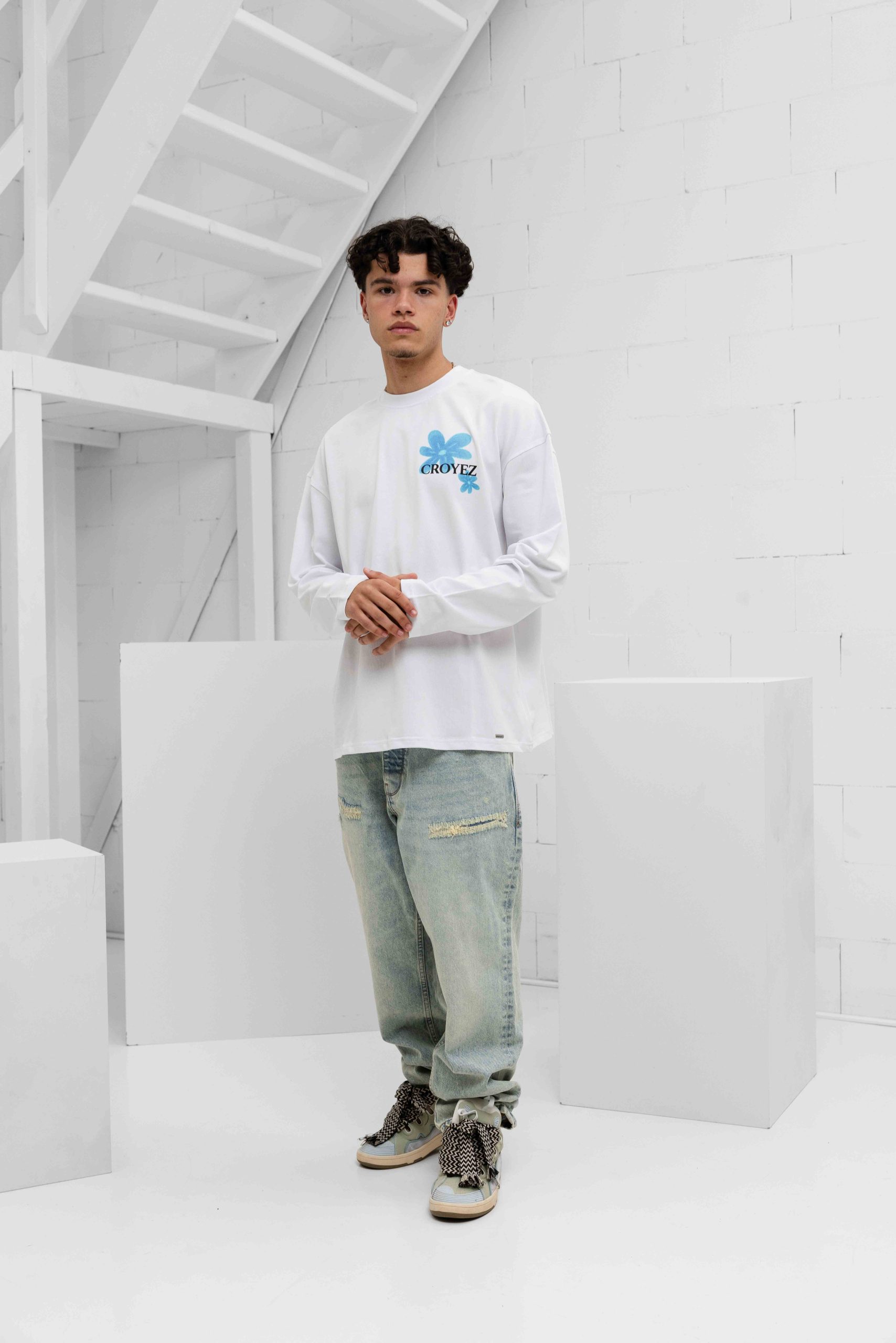 Croyez Botanique Longsleeve Heren Wit/Blauw