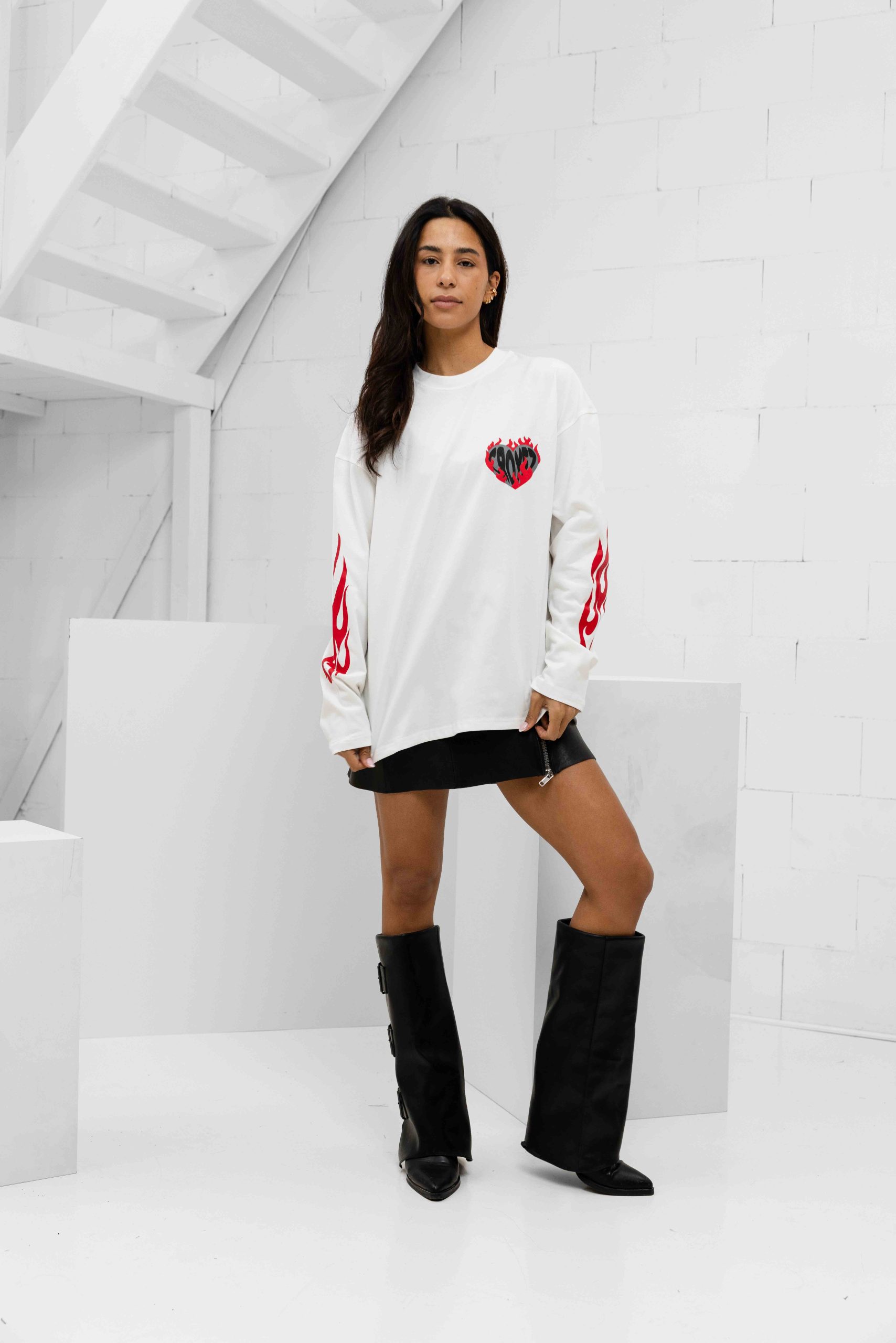 Croyez Heart On Fire Longsleeve T-Shirt Dames Gebroken Wit