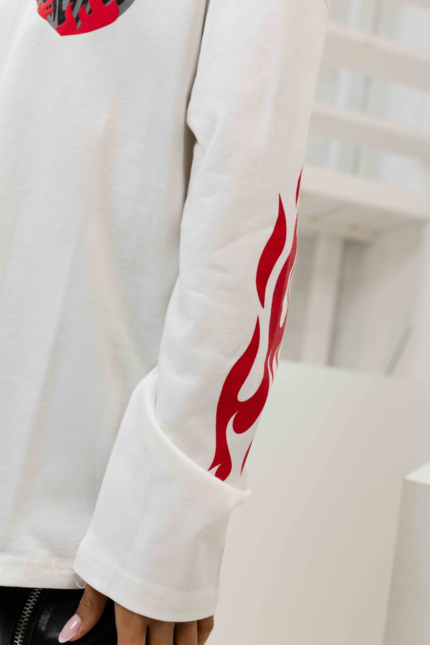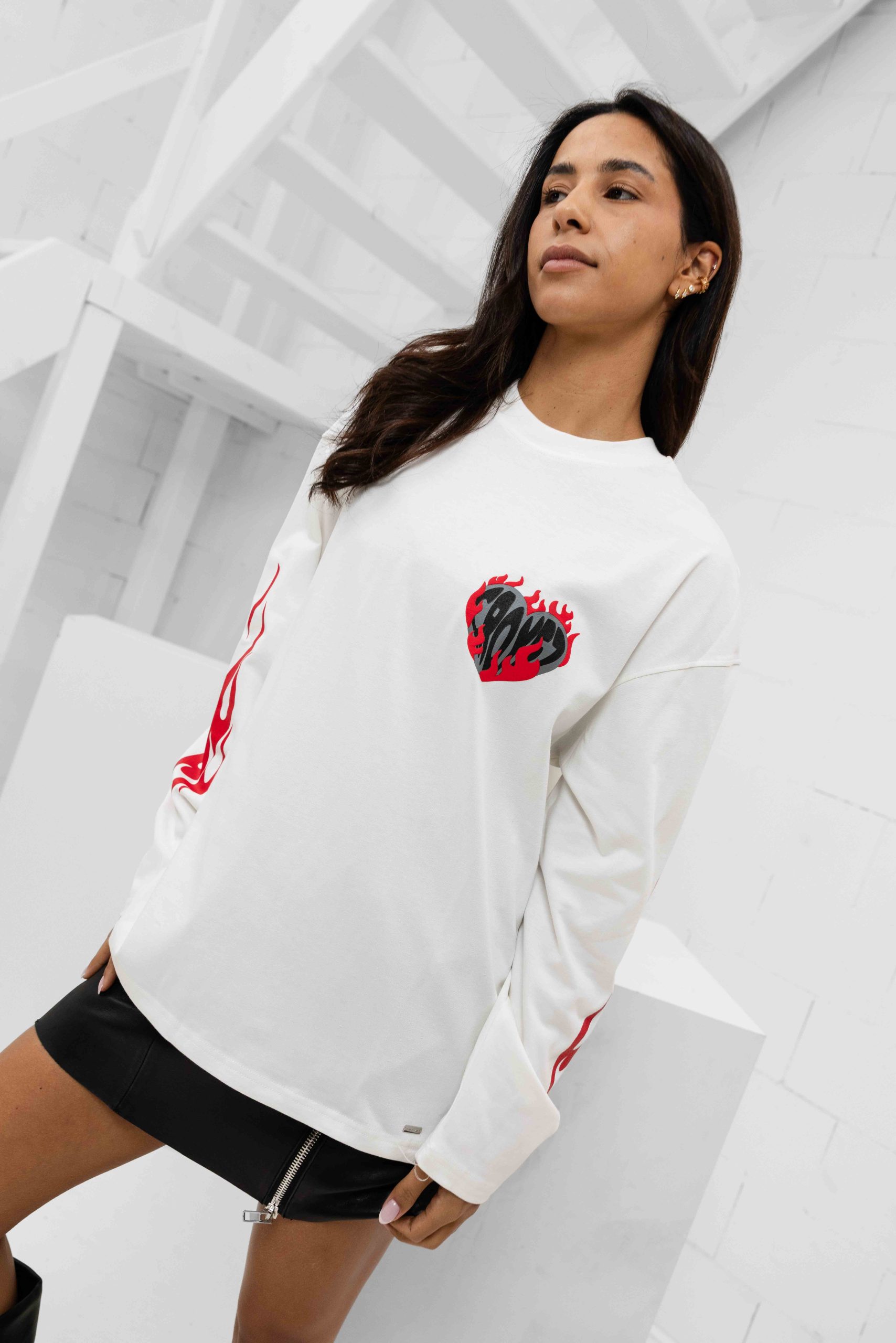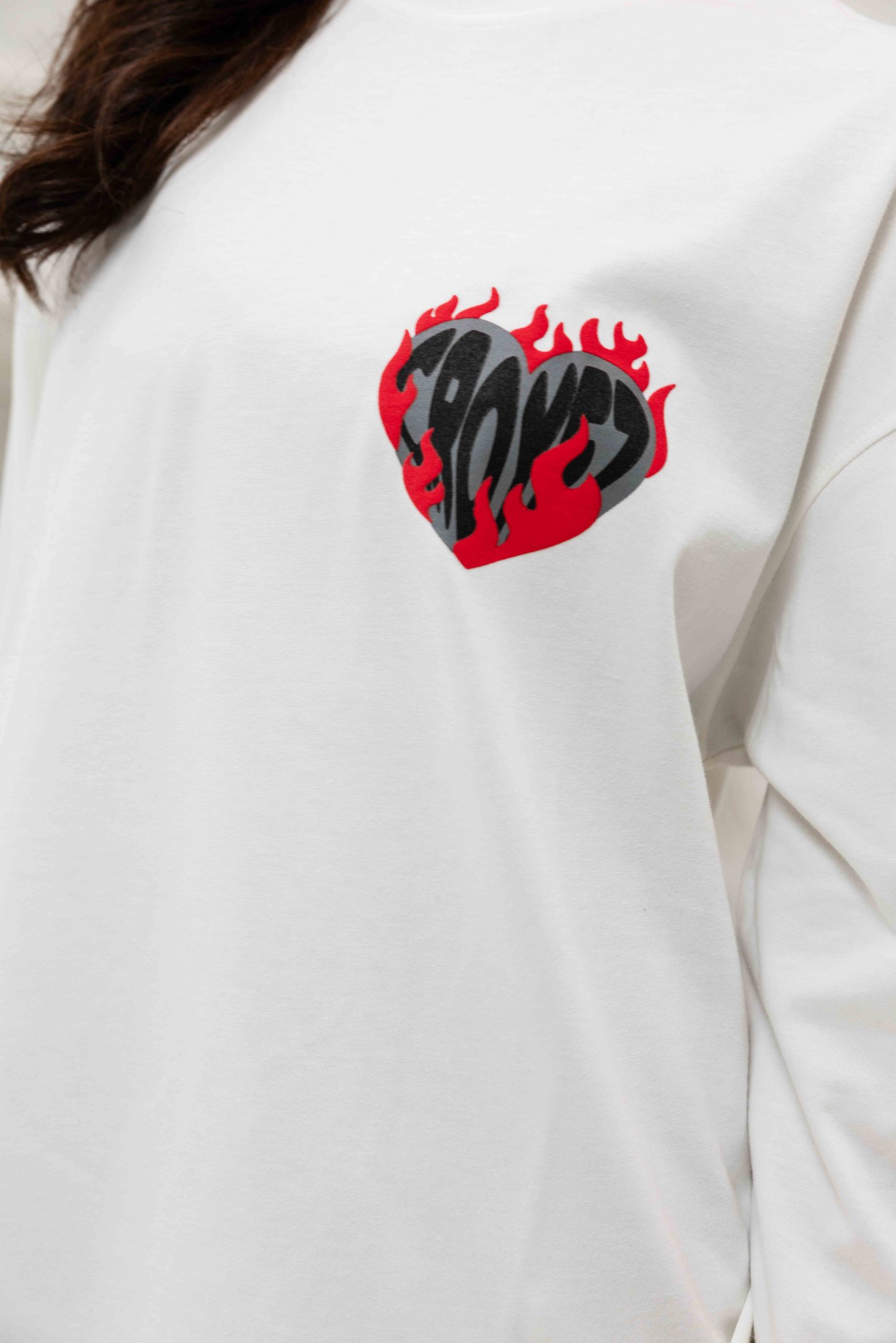 Heart On Fire Longsleeve T-Shirt Dames Gebroken Wit