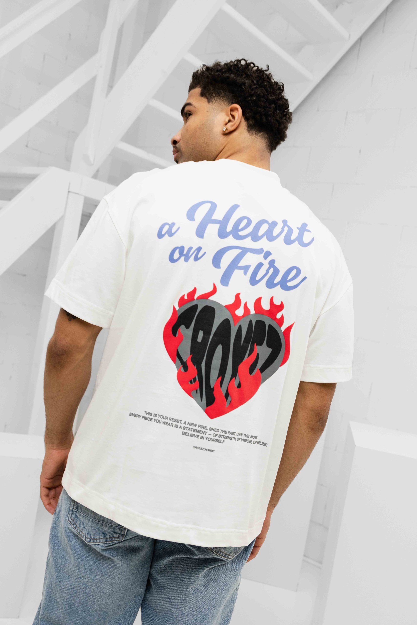 Heren > Croyez Heren > Croyez Heart On Fire T-Shirt Heren Gebroken Wit