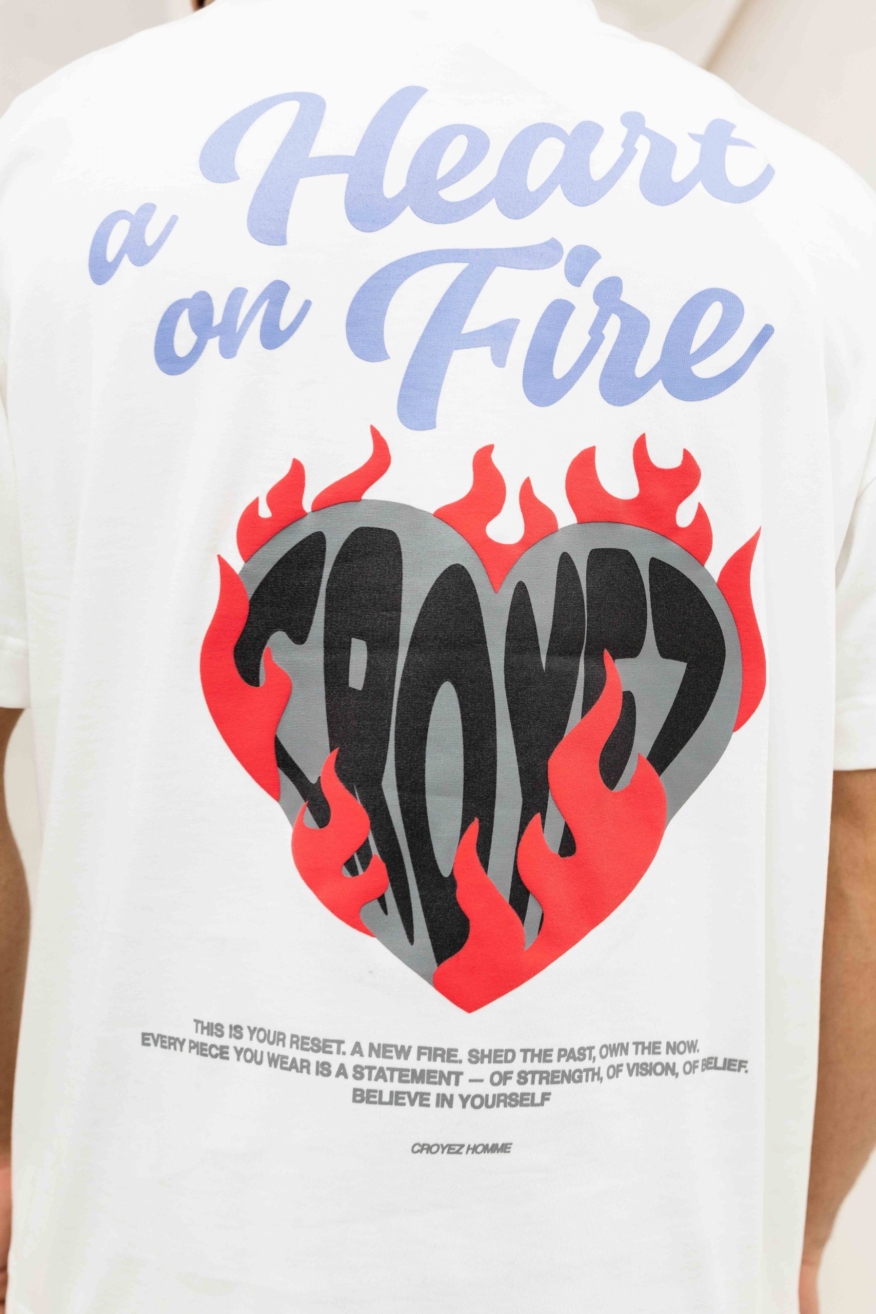 Croyez Heart On Fire T-Shirt Heren Gebroken Wit
