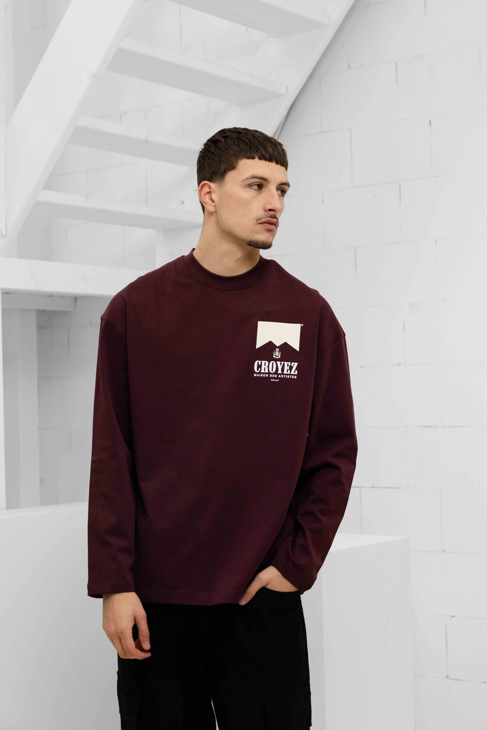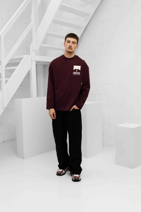 Croyez Maison Fumes Longsleeve T-Shirt Heren Donkerrood