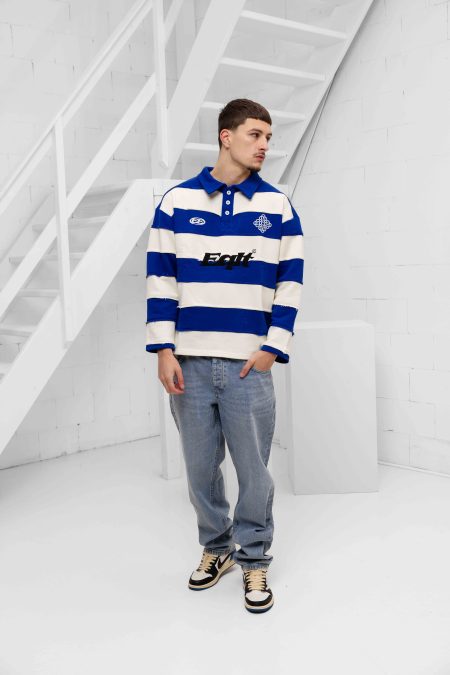 De Equalité Stripe Jersey Polo voor heren is een must-have item voor het komende herfst- en winterseizoen. Deze longsleeve polo heeft een kraag en een oversized pasvorm voor een comfortabele en trendy uitstraling. De polo is gemaakt van een mix van 70% katoen en 30% polyester, waardoor hij zacht aanvoelt en duurzaam is. De gebroken witte kleur met blauwe strepen geeft de polo een klassieke uitstraling, terwijl het effen patroon zorgt voor een tijdloze look. Met lange mouwen en geen sluiting is deze polo perfect voor casual en formele gelegenheden. Upgrade je kledingkast met de Equalité Stripe Jersey Polo en voeg een vleugje stijl toe aan je outfits!
