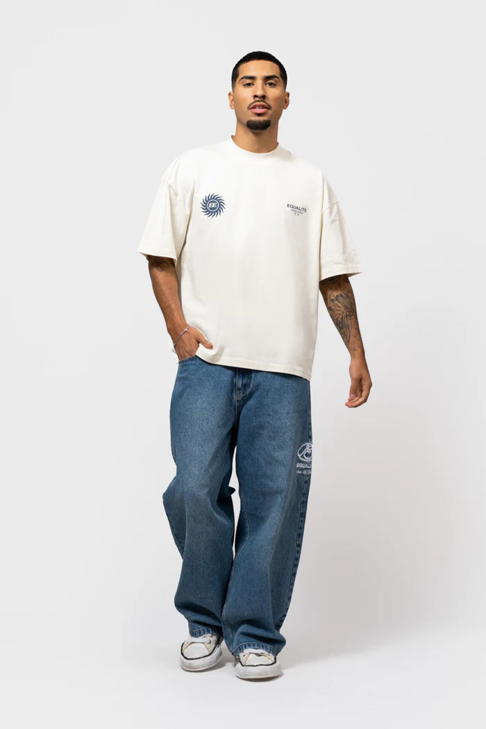 Equalité Sunny Boxy T-Shirt Heren Gebroken Wit/Donkerblauw