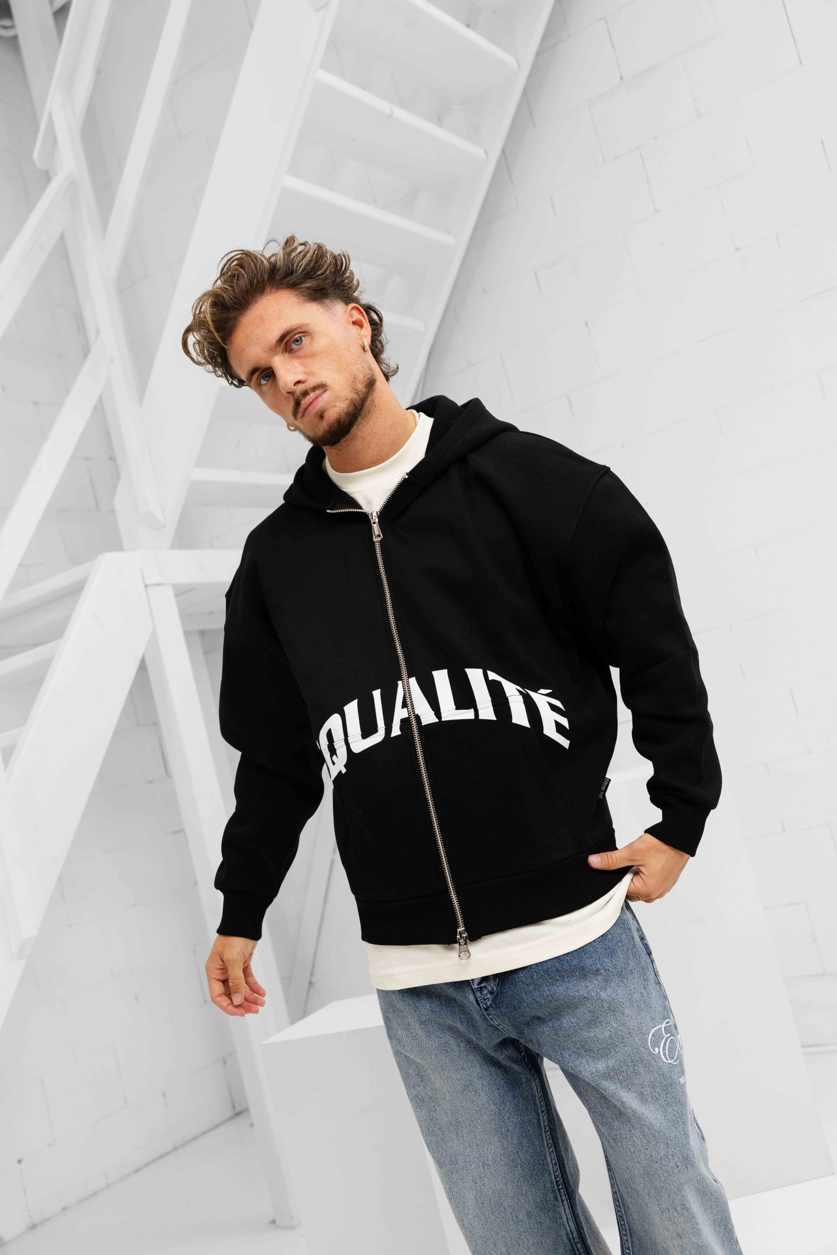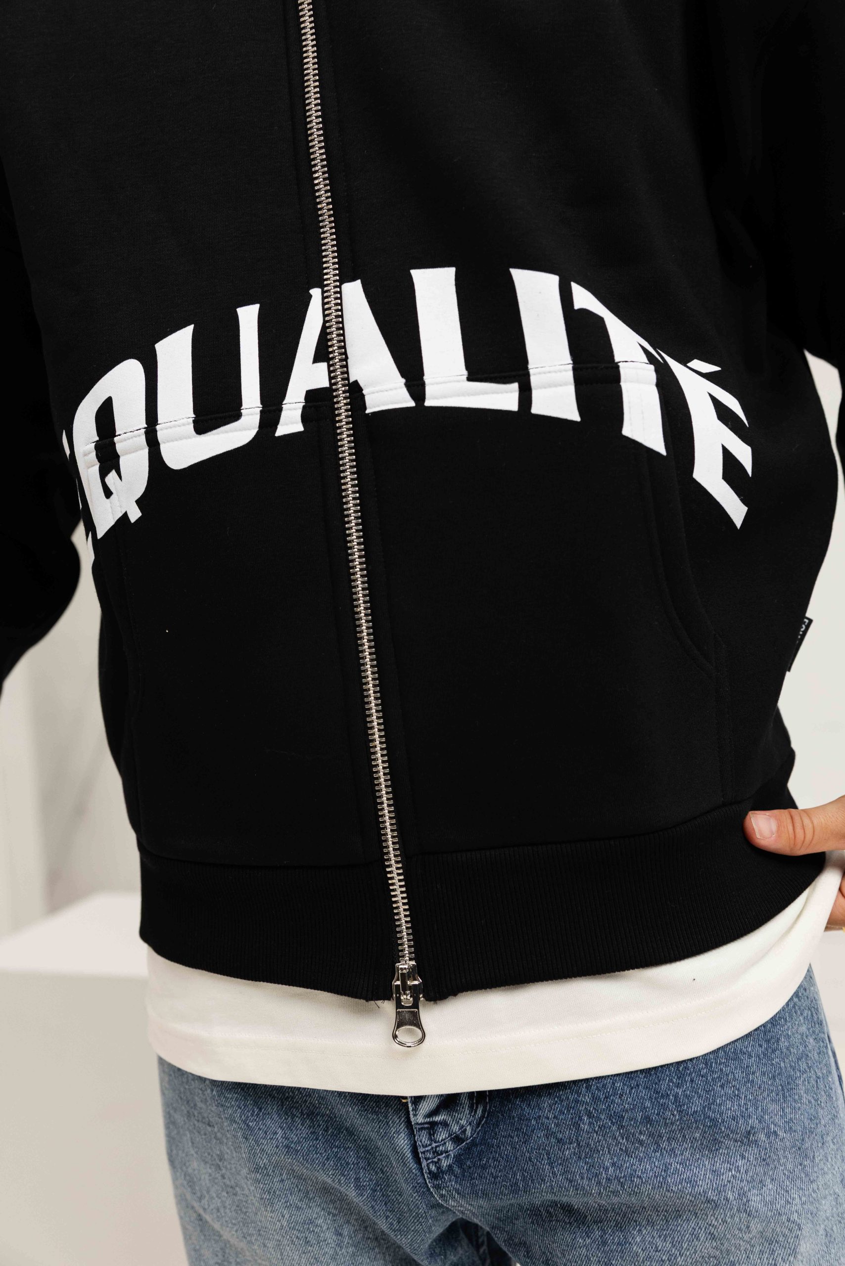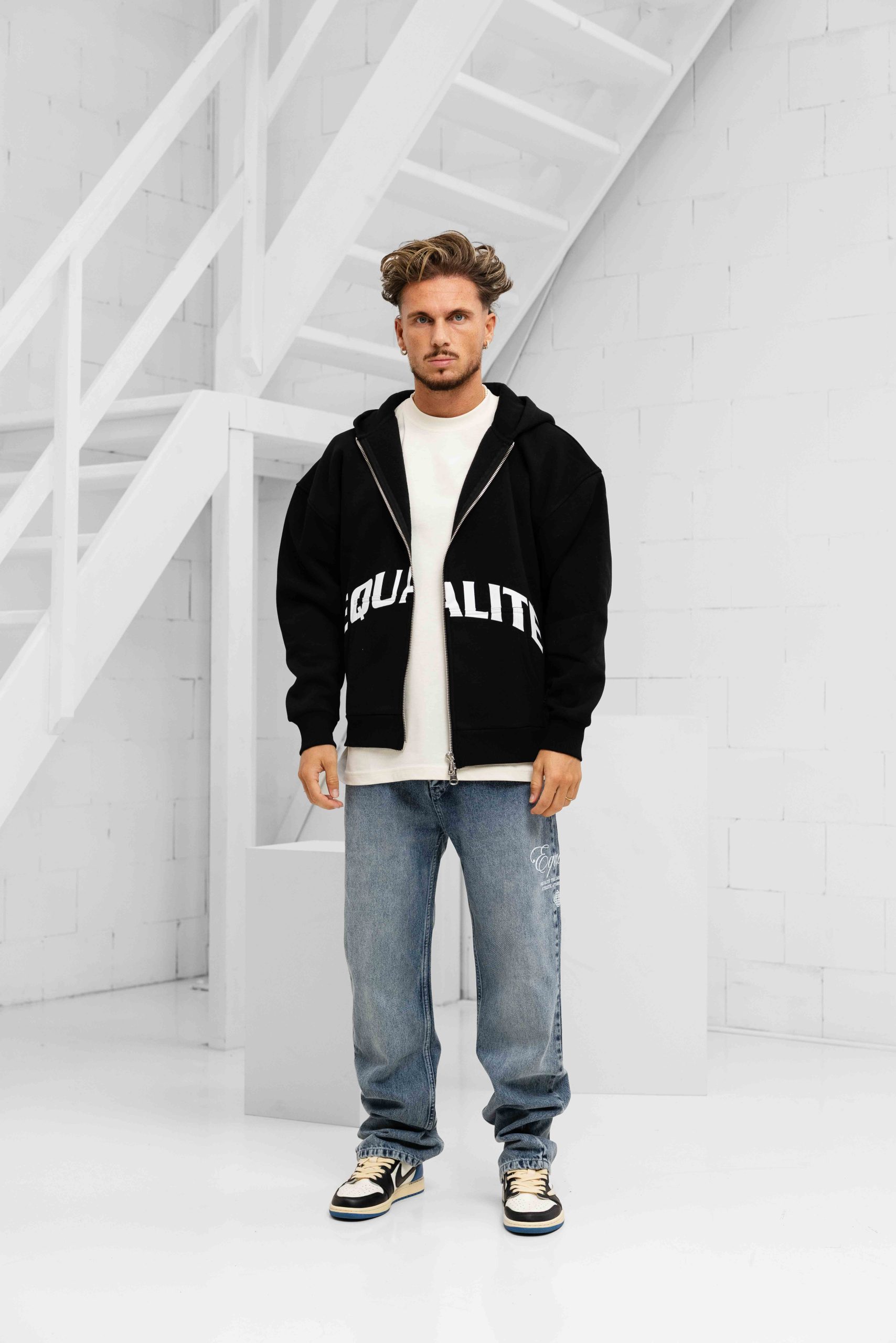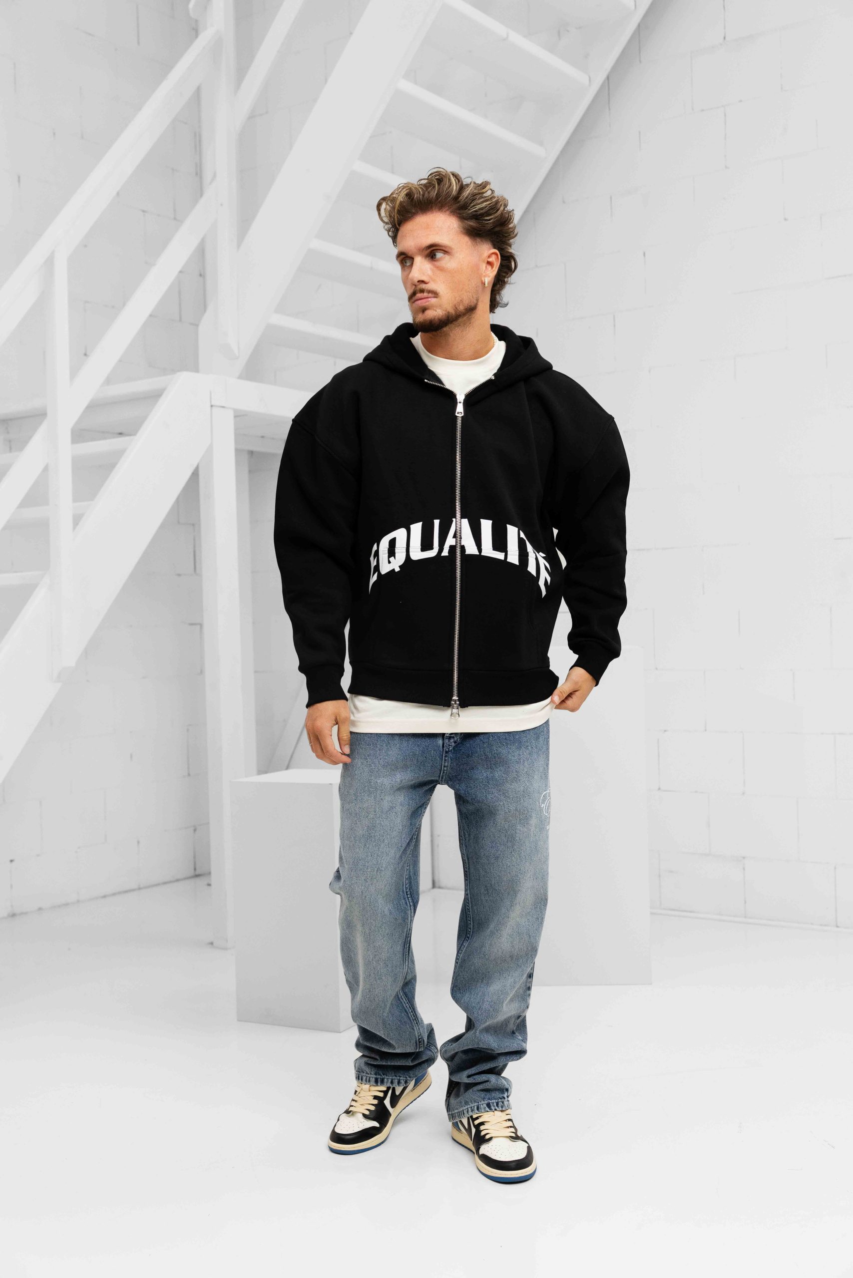 Equalité Varsity Oversized Full Zip Hoodie Heren Zwart