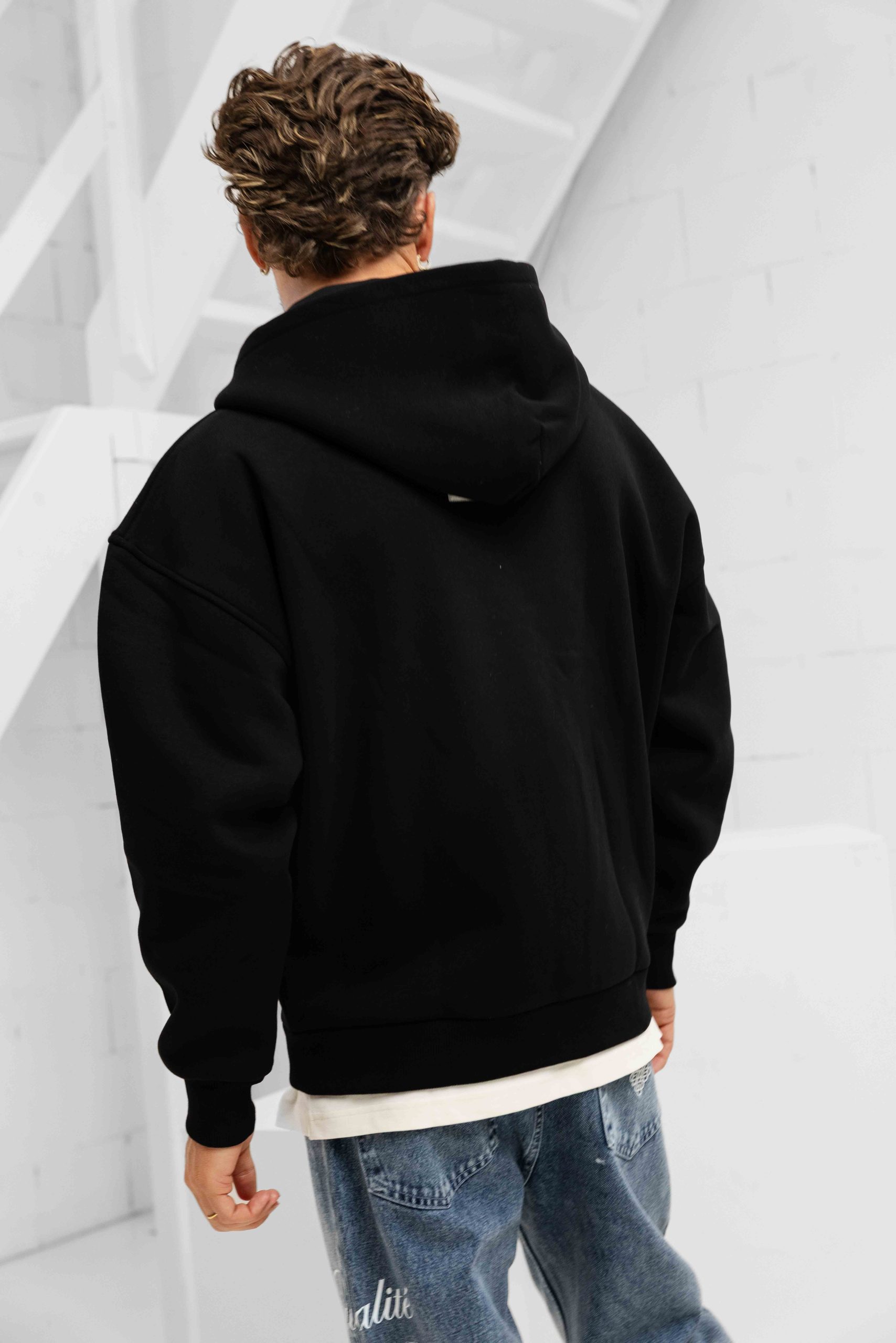 Varsity Oversized Full Zip Hoodie Heren Zwart