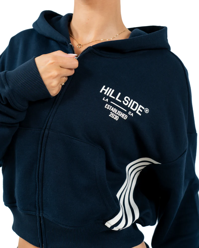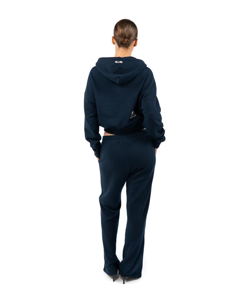 Het Hillside Stripe Trainingspak voor dames in donkerblauw is een tijdloos en comfortabel kledingstuk dat nooit uit de mode raakt. Dit trainingspak heeft een capuchon en lange mouwen, gemaakt van 100% katoen voor een zachte en ademende stof. De pasvorm is zowel cropped als oversized, waardoor het trainingspak zowel trendy als comfortabel is. Het trainingspak heeft een effen donkerblauwe kleur en is voorzien van een elastische band en koord als sluiting. Daarnaast heeft het trainingspak praktische zakken, waaronder een kangoeroezak en twee buitenzakken. Met het Hillside Stripe Trainingspak ben je klaar voor elke sportieve activiteit of gewoon voor een relaxte dag thuis.