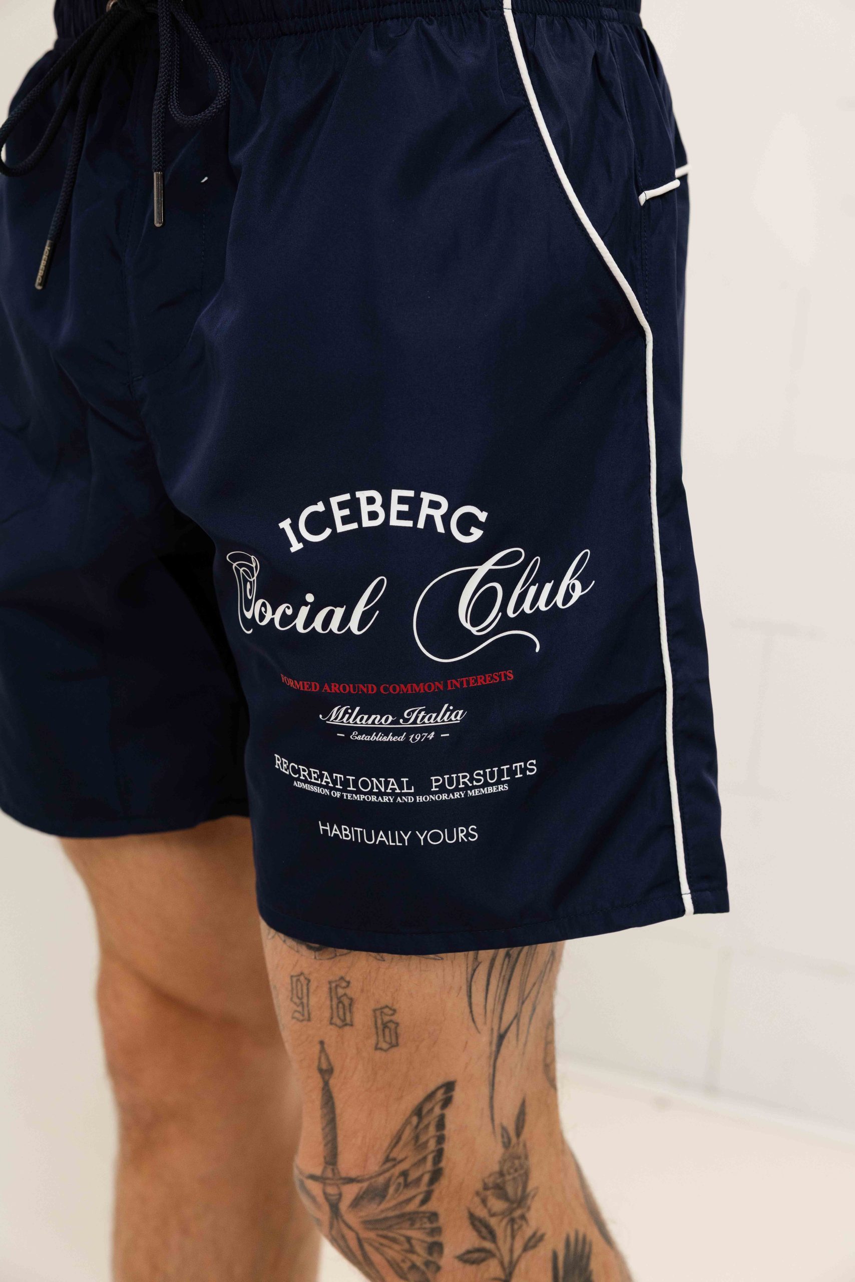 De Iceberg Social Club Medium Boardshort Zwembroek voor heren is perfect voor de lente/zomercollectie. Deze donkerblauwe zwembroek met een subtiel wit logo heeft een normale pasvorm en is gemaakt van 100% polyester, waardoor hij comfortabel en duurzaam is. De zwembroek heeft een elastische band en koordsluiting voor een perfecte pasvorm en twee handige buitenzakken om je essentials in op te bergen. Of je nu een duik neemt in het zwembad of een dagje op het strand doorbrengt, deze Iceberg zwembroek is de ideale keuze voor stijlvolle heren die van comfort houden.