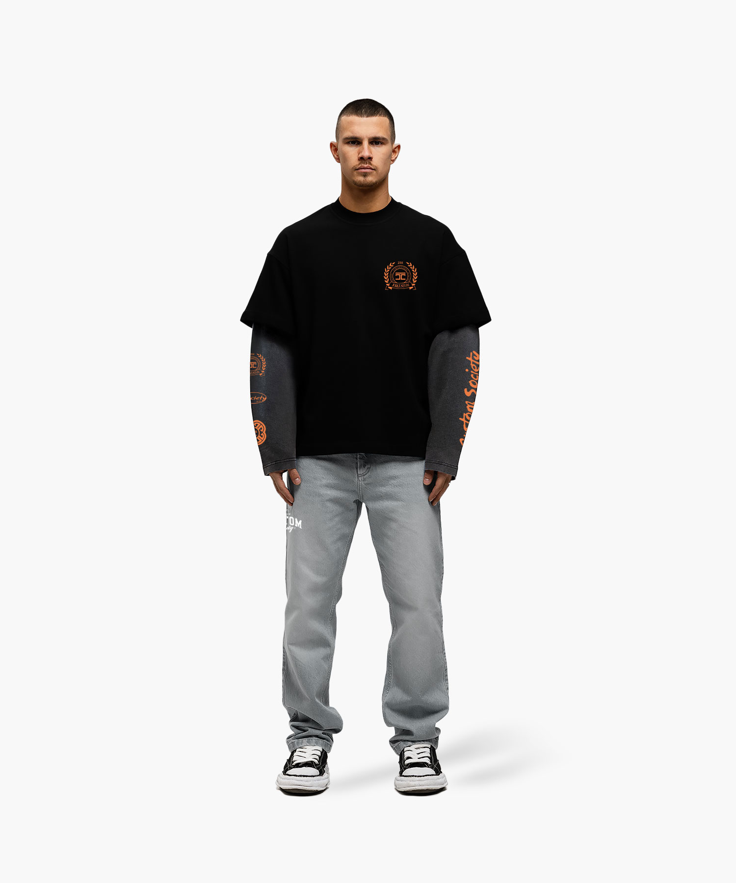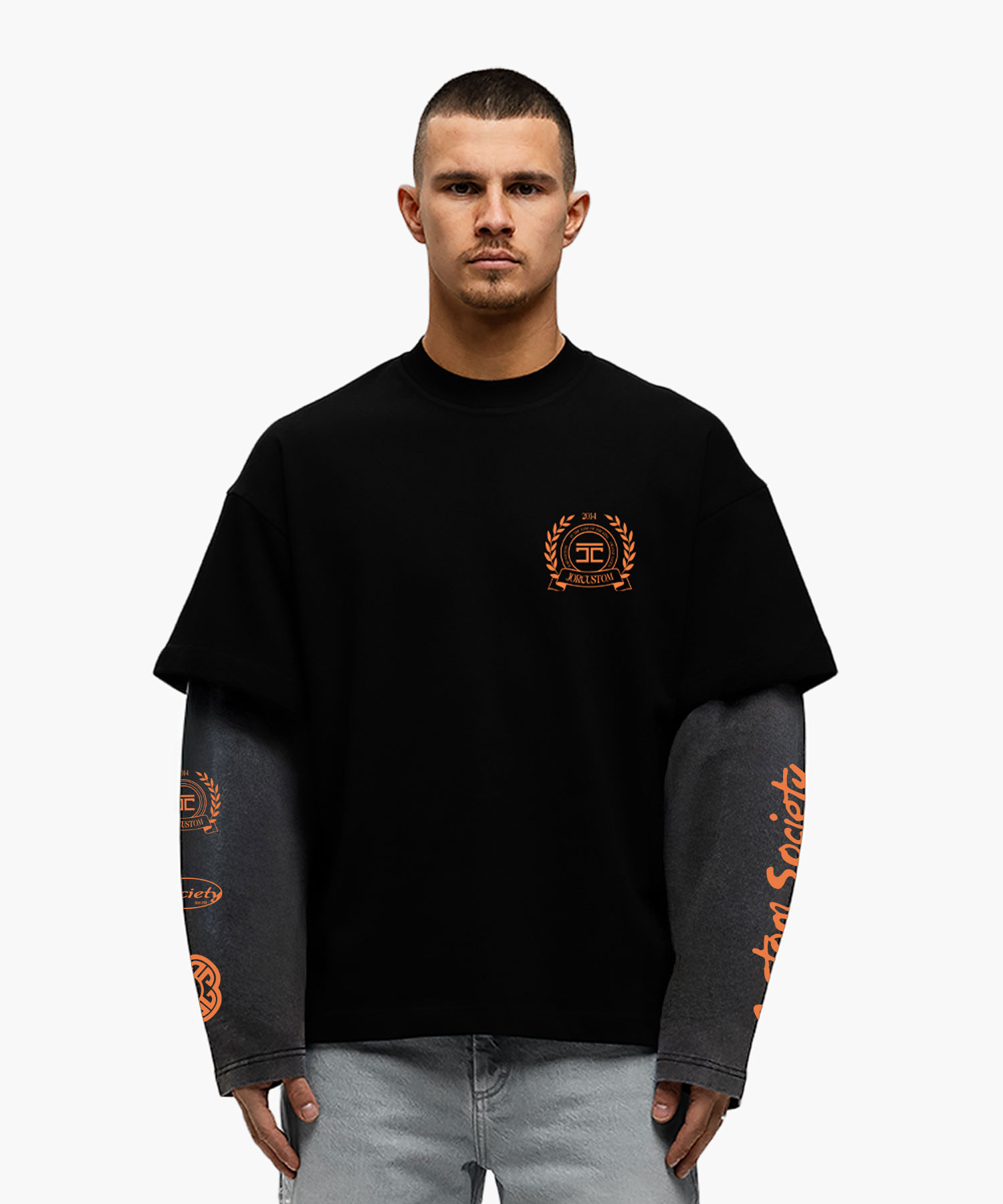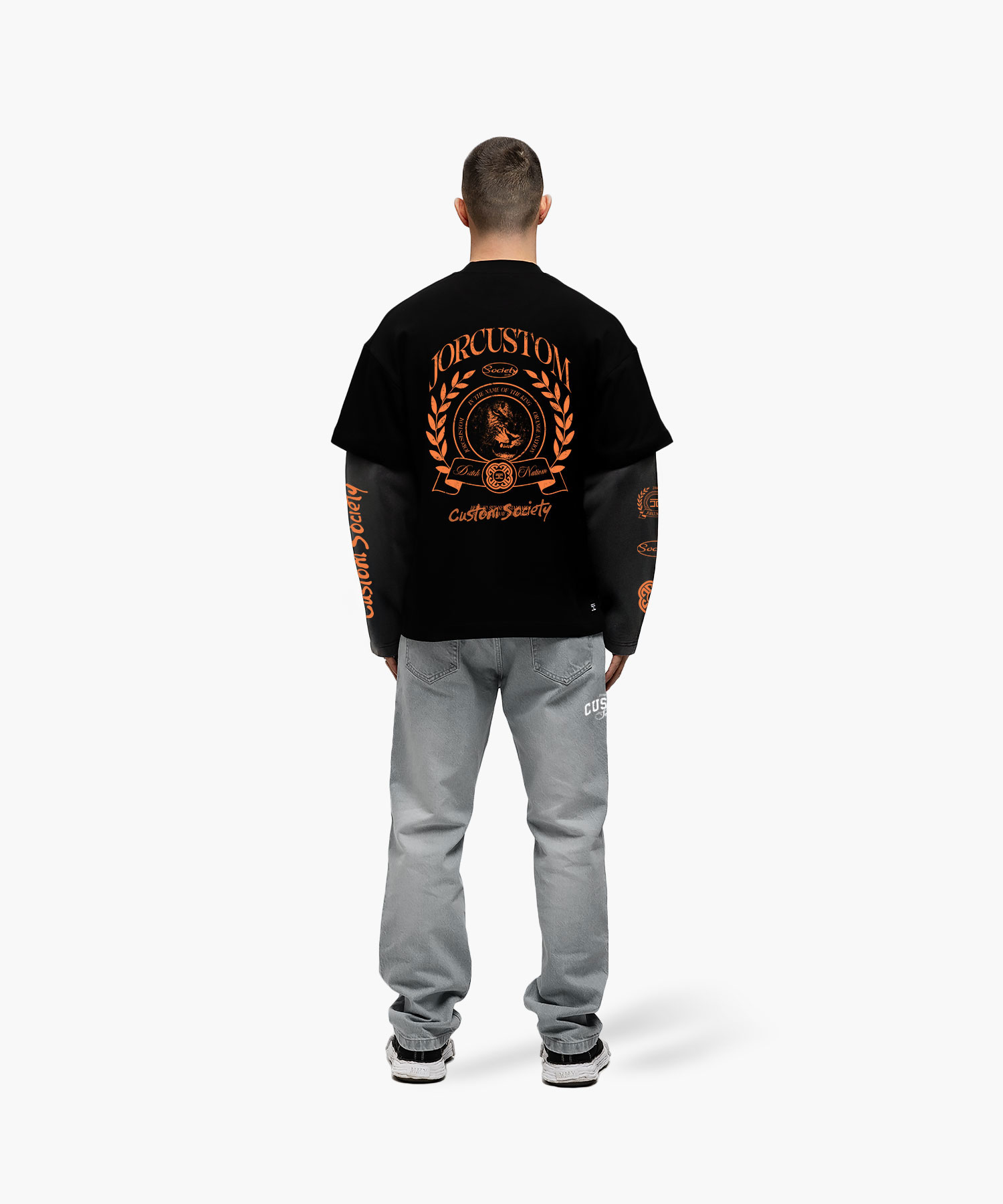 Jorcustom Dutch Nation Double Layered Longsleeve T-Shirt Heren Zwart/Grijs