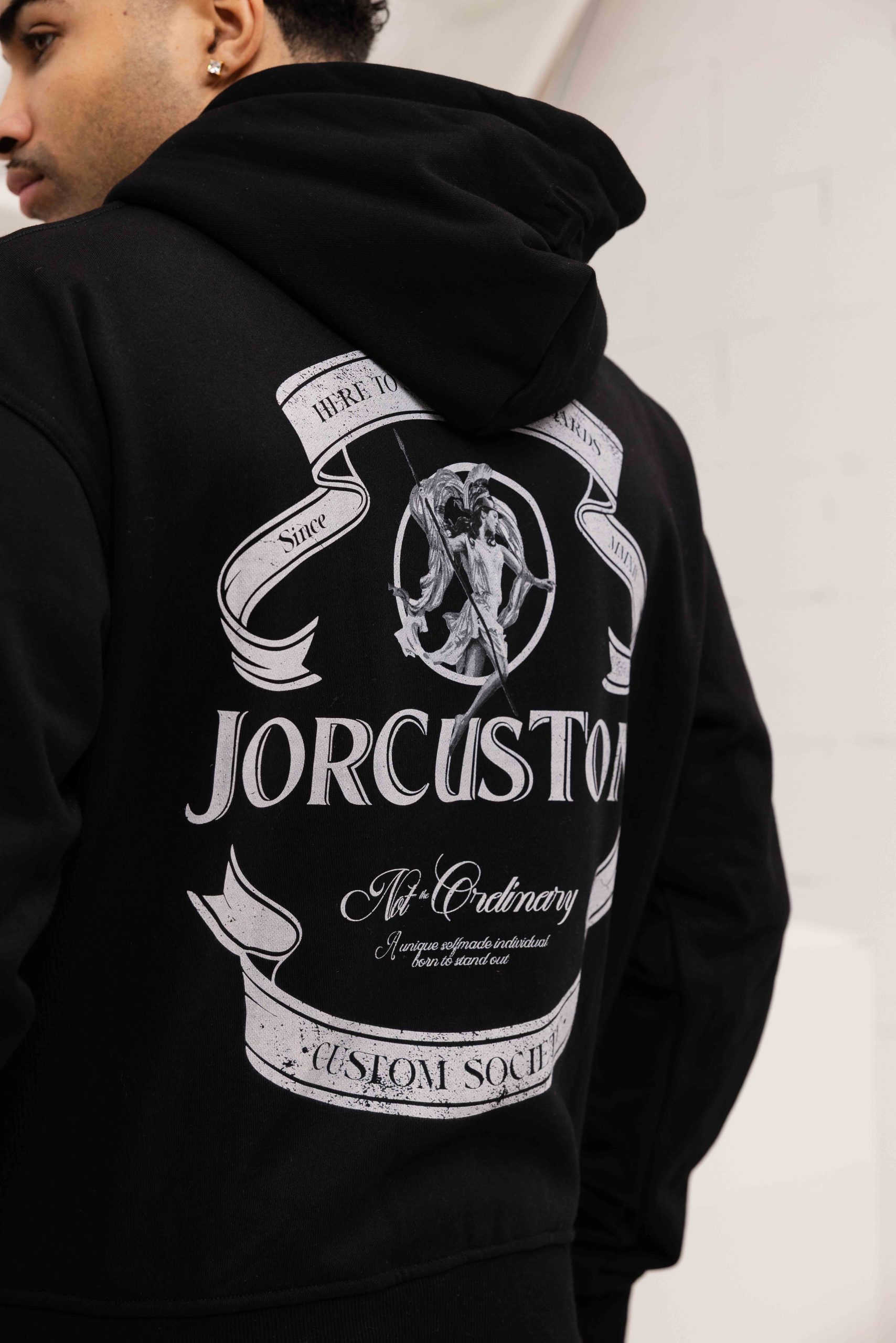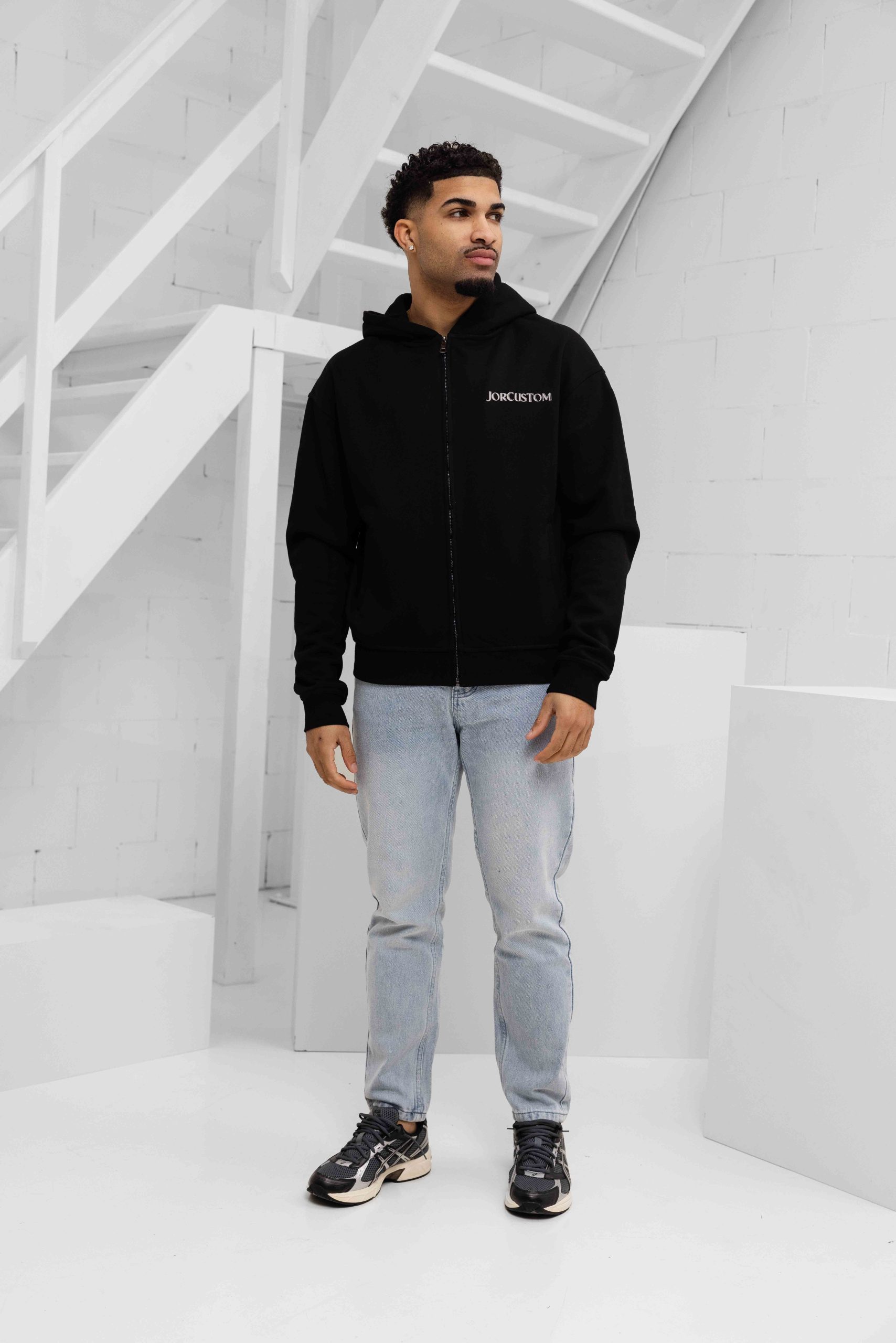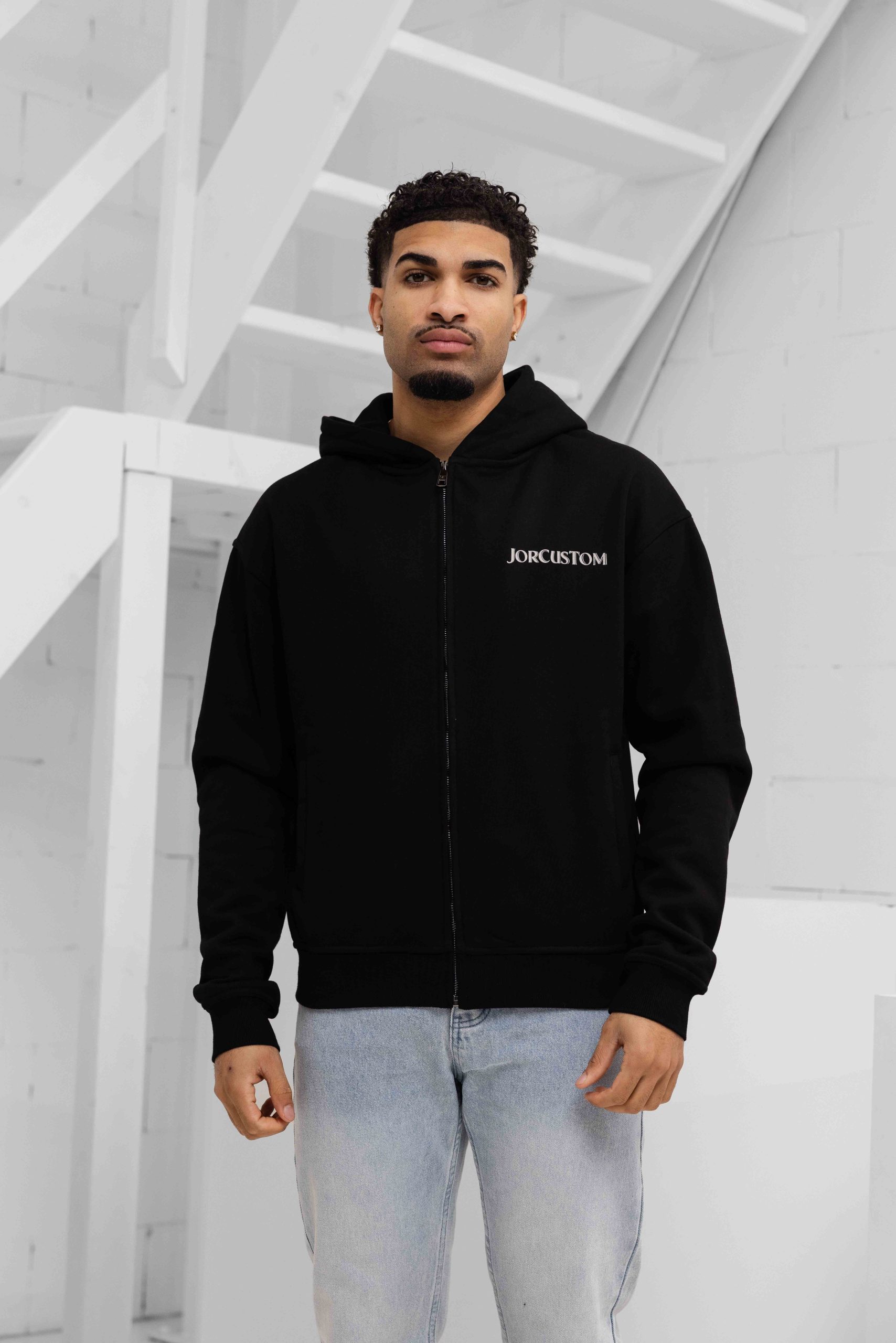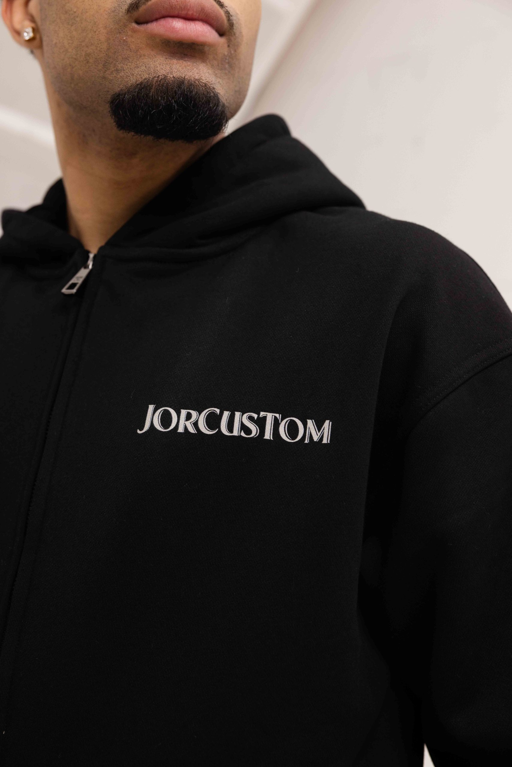 Jorcustom Fleece Ribbon Zipped Hoodie Heren Zwart