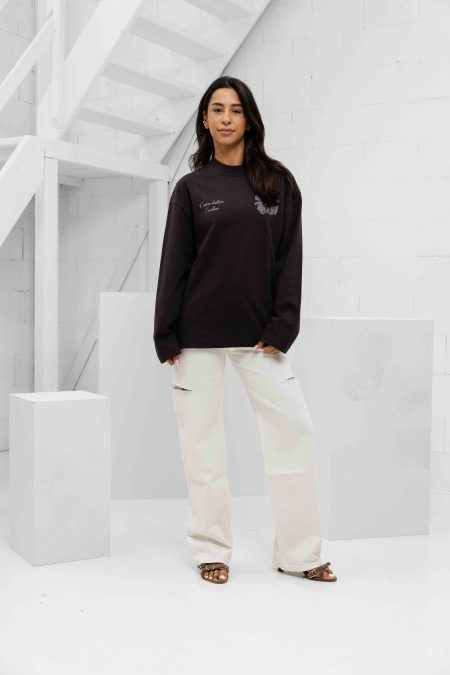 De Jorcustom Flowers Longsleeve T-Shirt voor dames in het bruin is een must-have item voor de lente/zomer collectie. De ronde hals en lange mouwen zorgen voor een comfortabele pasvorm, terwijl het 100% katoenen materiaal zorgt voor ademend vermogen. De loosefit pasvorm maakt dit shirt perfect voor een casual look. De backprint met bloemenpatroon geeft een trendy touch aan dit klassieke item. Een stijlvolle toevoeging aan je garderobe van het bekende merk Jorcustom.