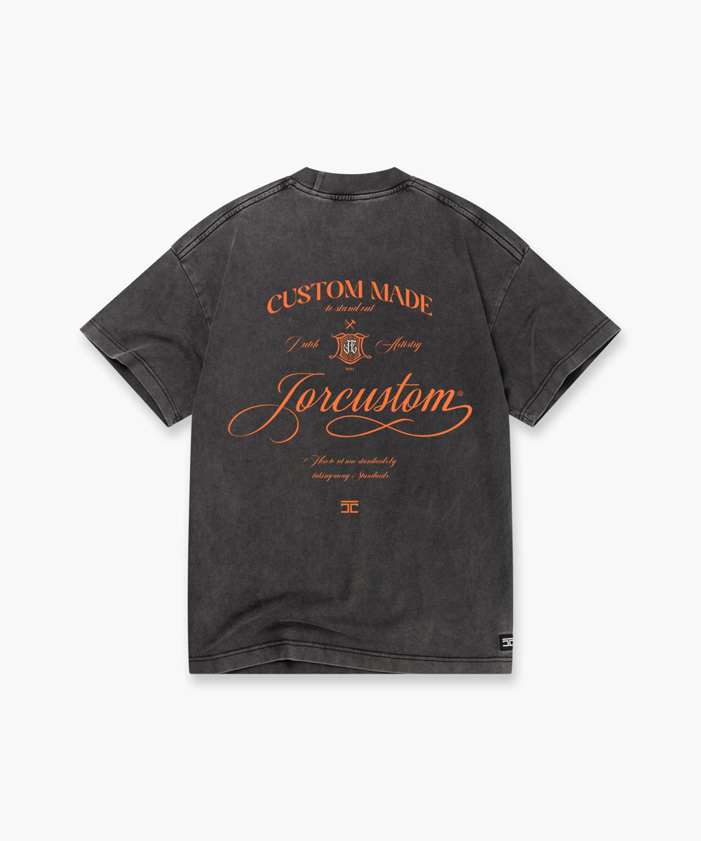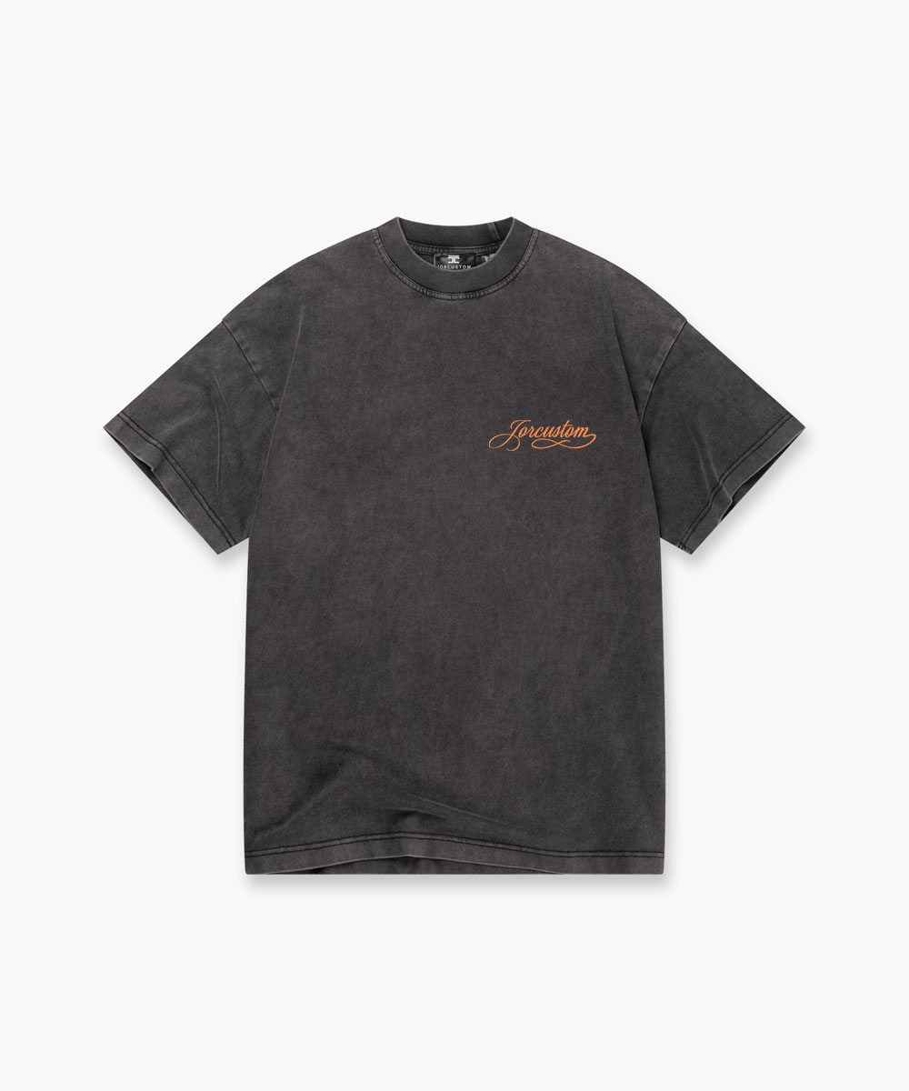 Jorcustom Handscript Loose Fit T-Shirt Heren Donkergrijs/Oranje