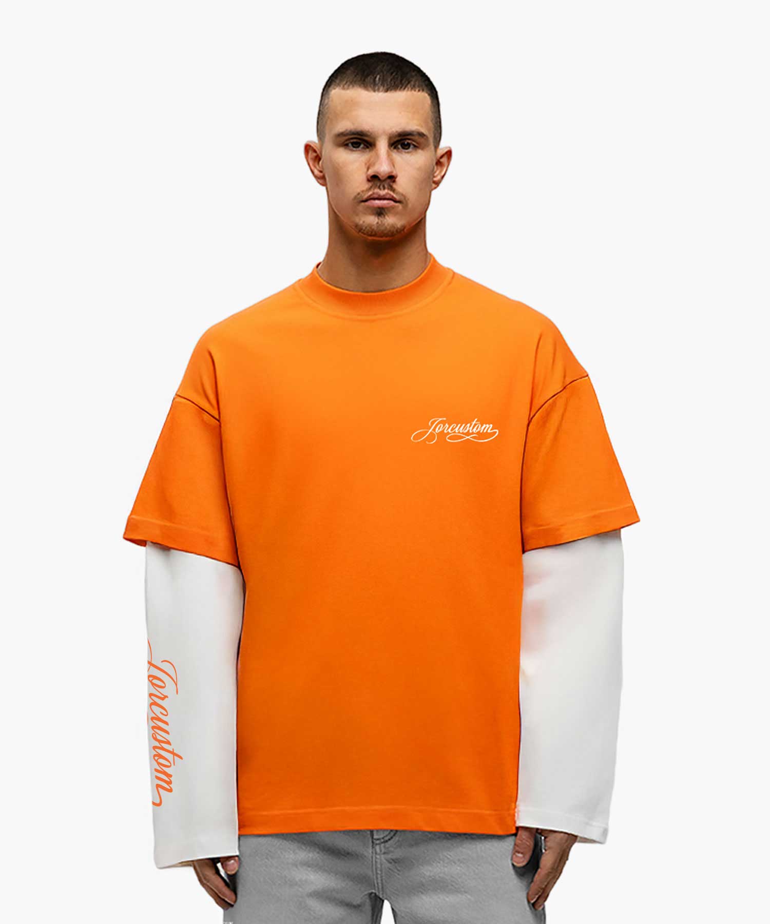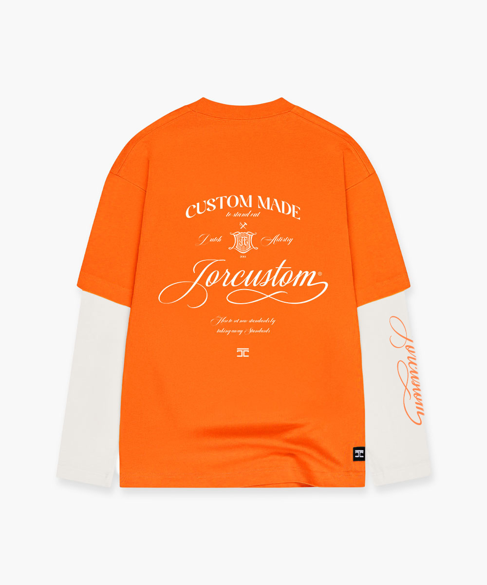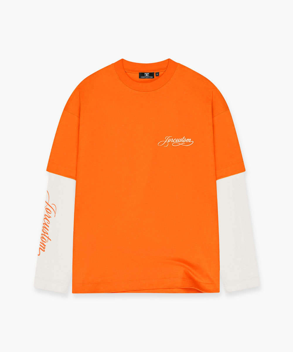 Jorcustom KD-Handscript Double Layered Longsleeve T-Shirt Heren Oranje/Wit