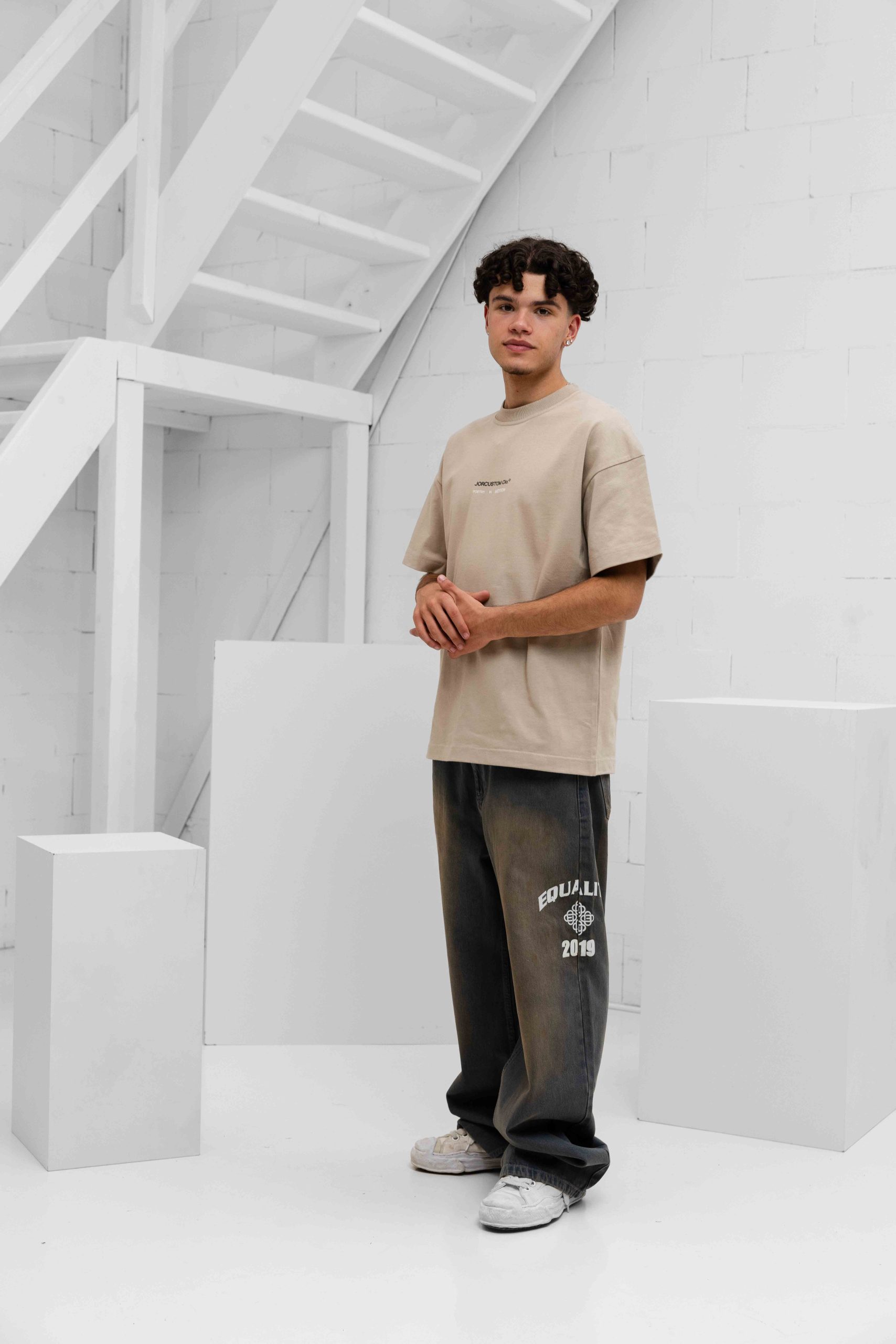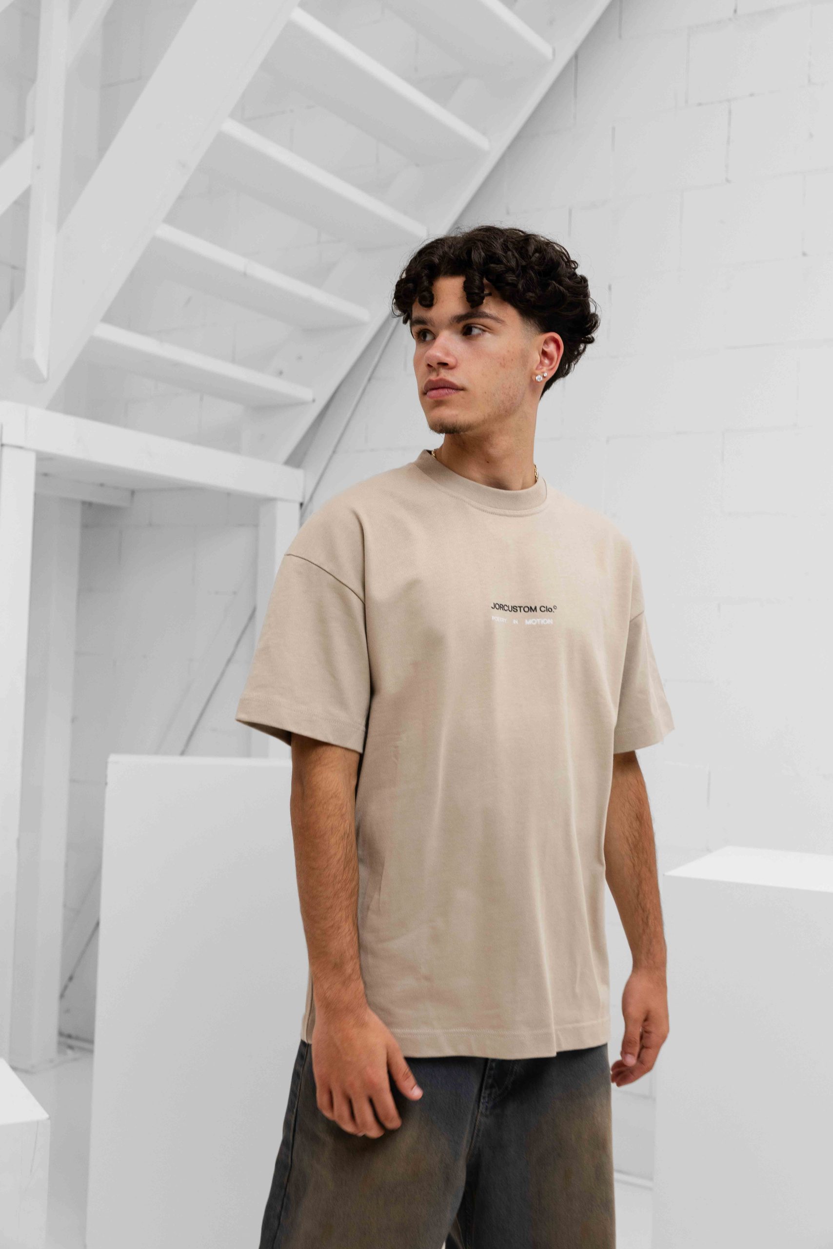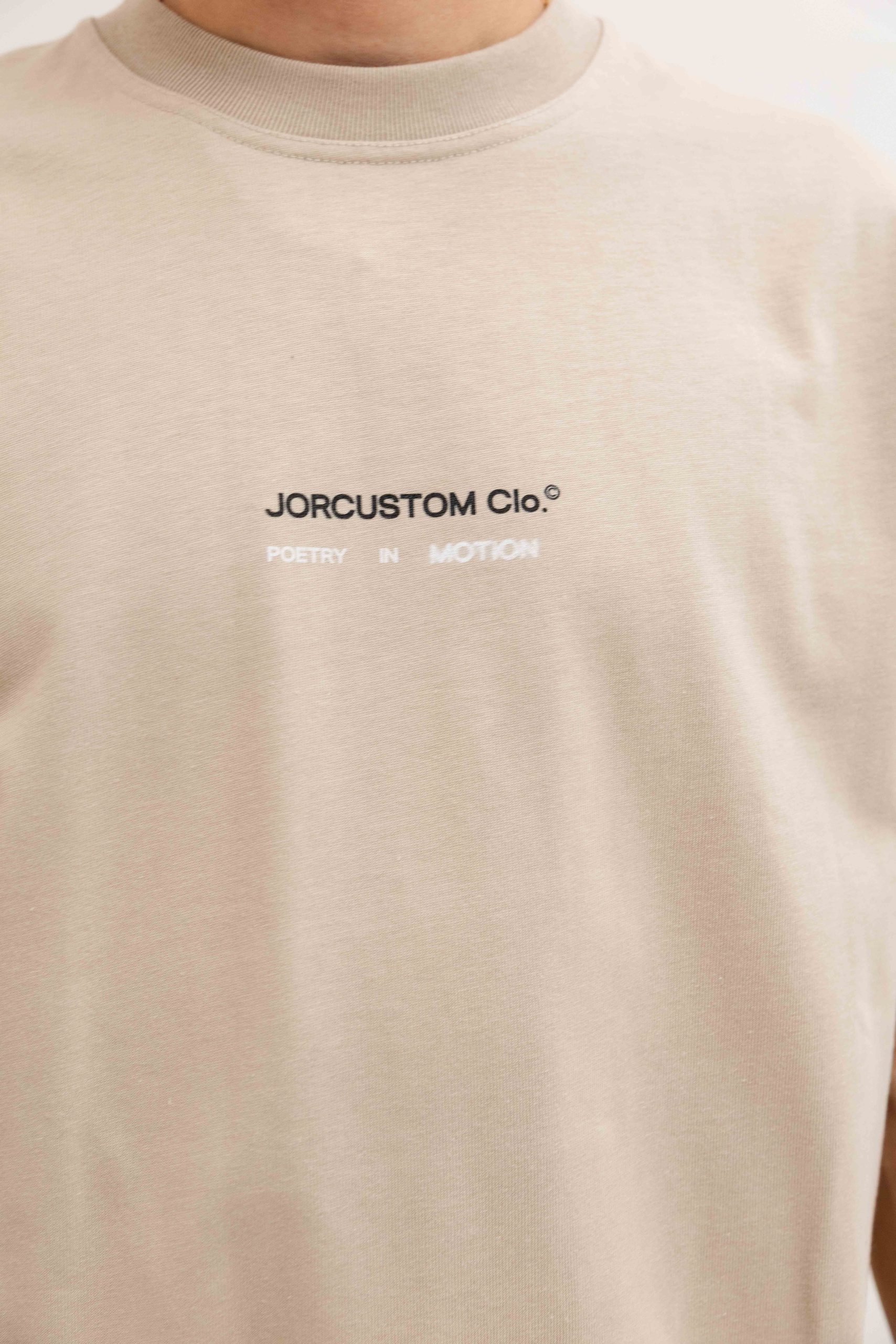 Jorcustom Poetry ln Motion Loose Fit T-Shirt Heren Beige Het Jorcustom PoetrylnMotion Loose Fit T-Shirt voor Heren in de kleur beige is een must-have item voor het komende Lente/Zomerseizoen. Dit comfortabele t-shirt is gemaakt van 100% katoen en heeft een ronde hals en korte mouwen voor een casual look. De loose fit pasvorm zorgt voor een relaxte en trendy uitstraling. Het t-shirt is voorzien van een opvallende backprint, waardoor je zeker zult opvallen. Perfect voor een dagje uit of gewoon voor een relaxte dag thuis. Maak je outfit compleet met dit stijlvolle en trendy t-shirt van het merk Jorcustom.
