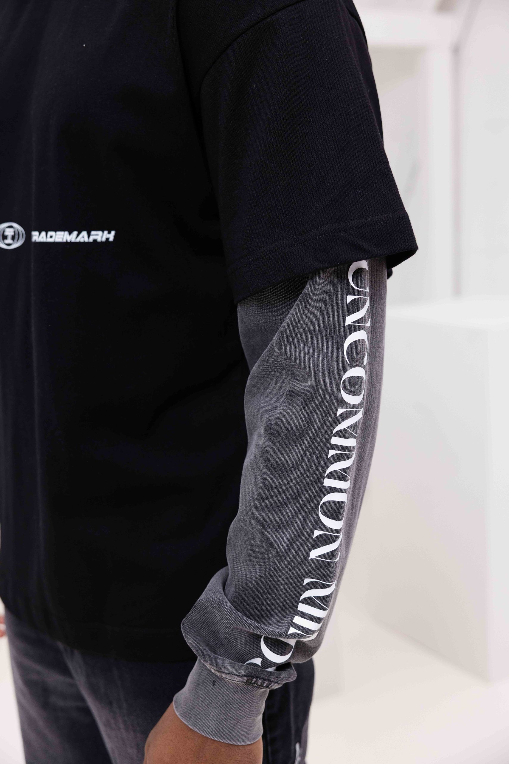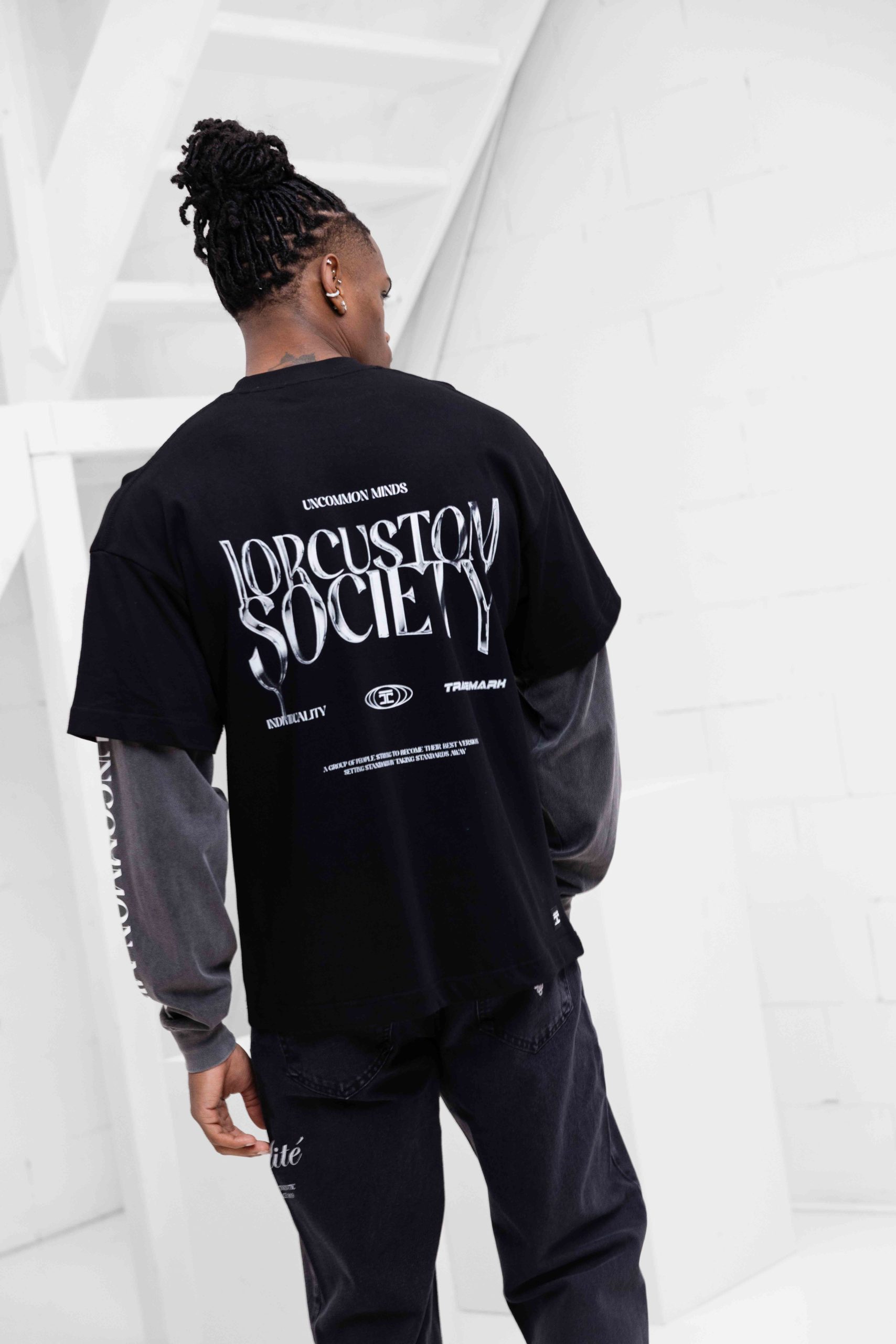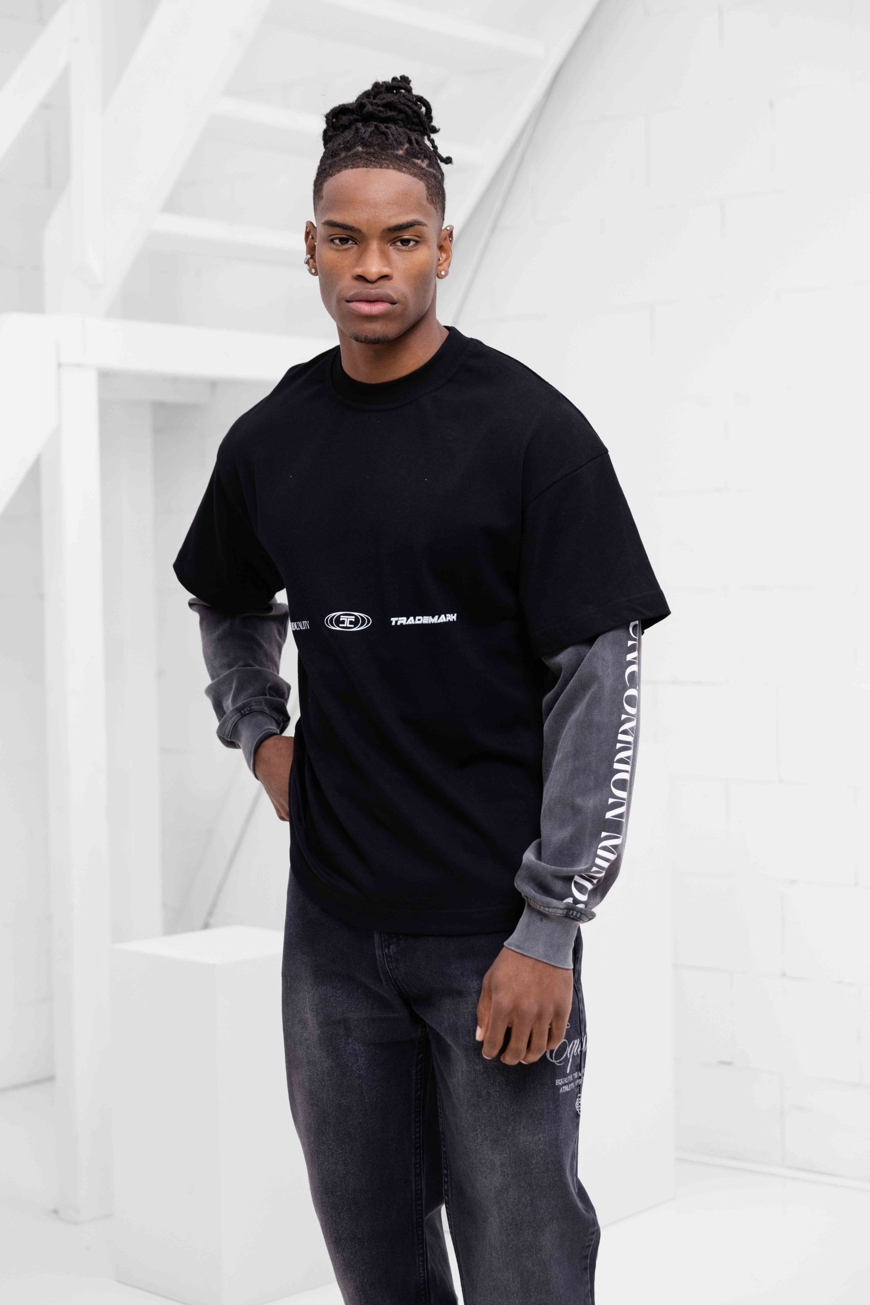 Jorcustom Uncommon Minds Double Layered Longsleeve T-Shirt Heren Zwart/Donkergrijs