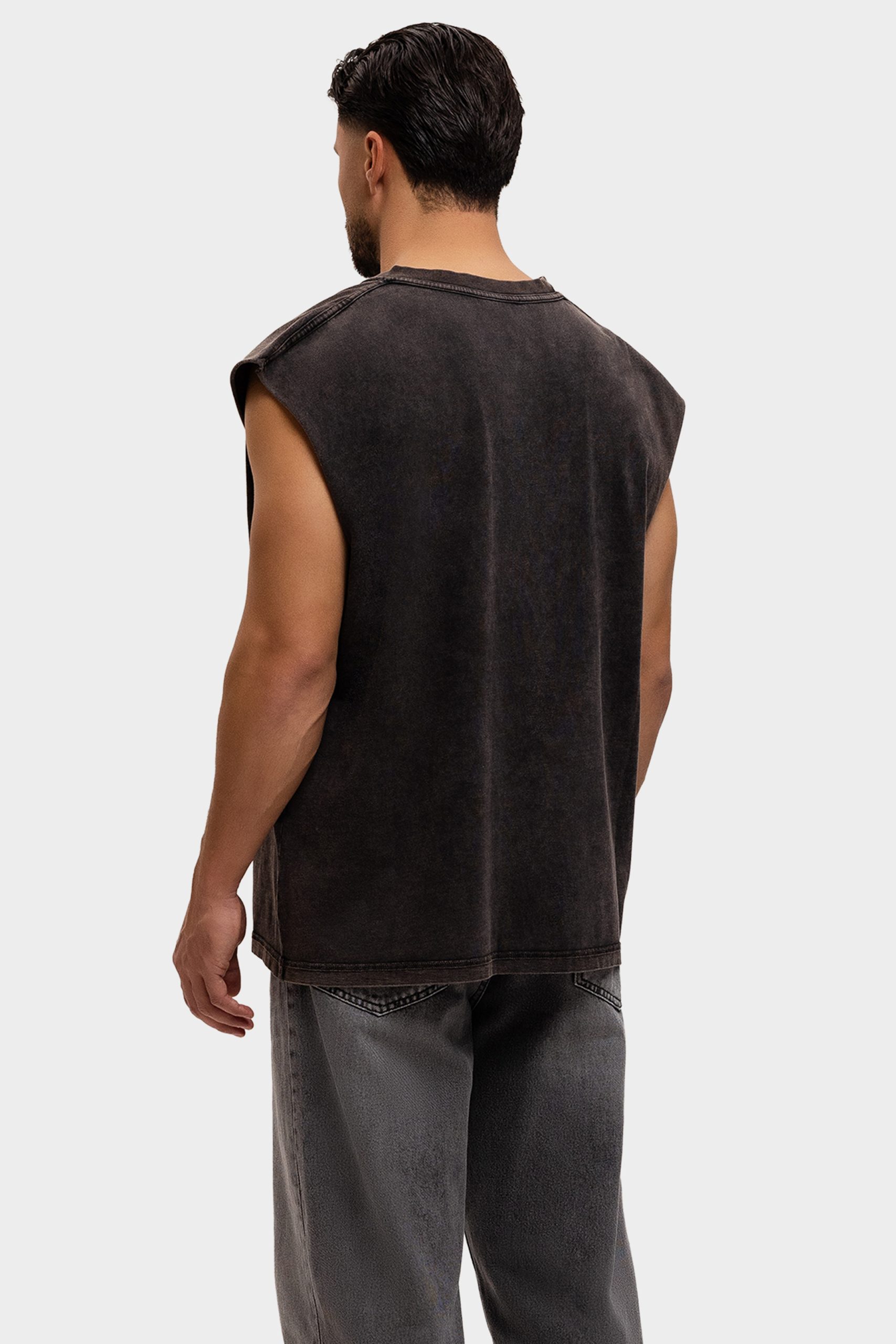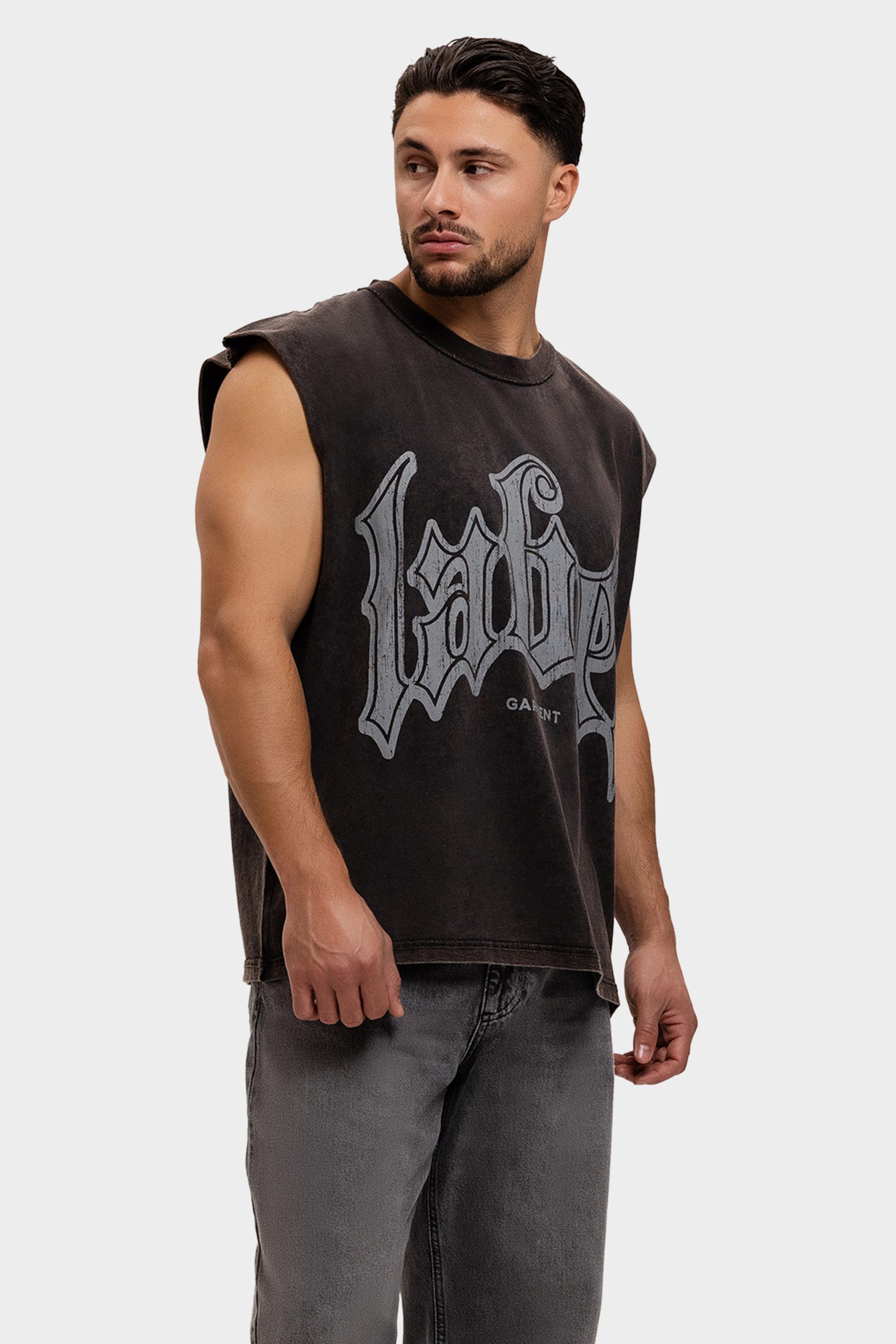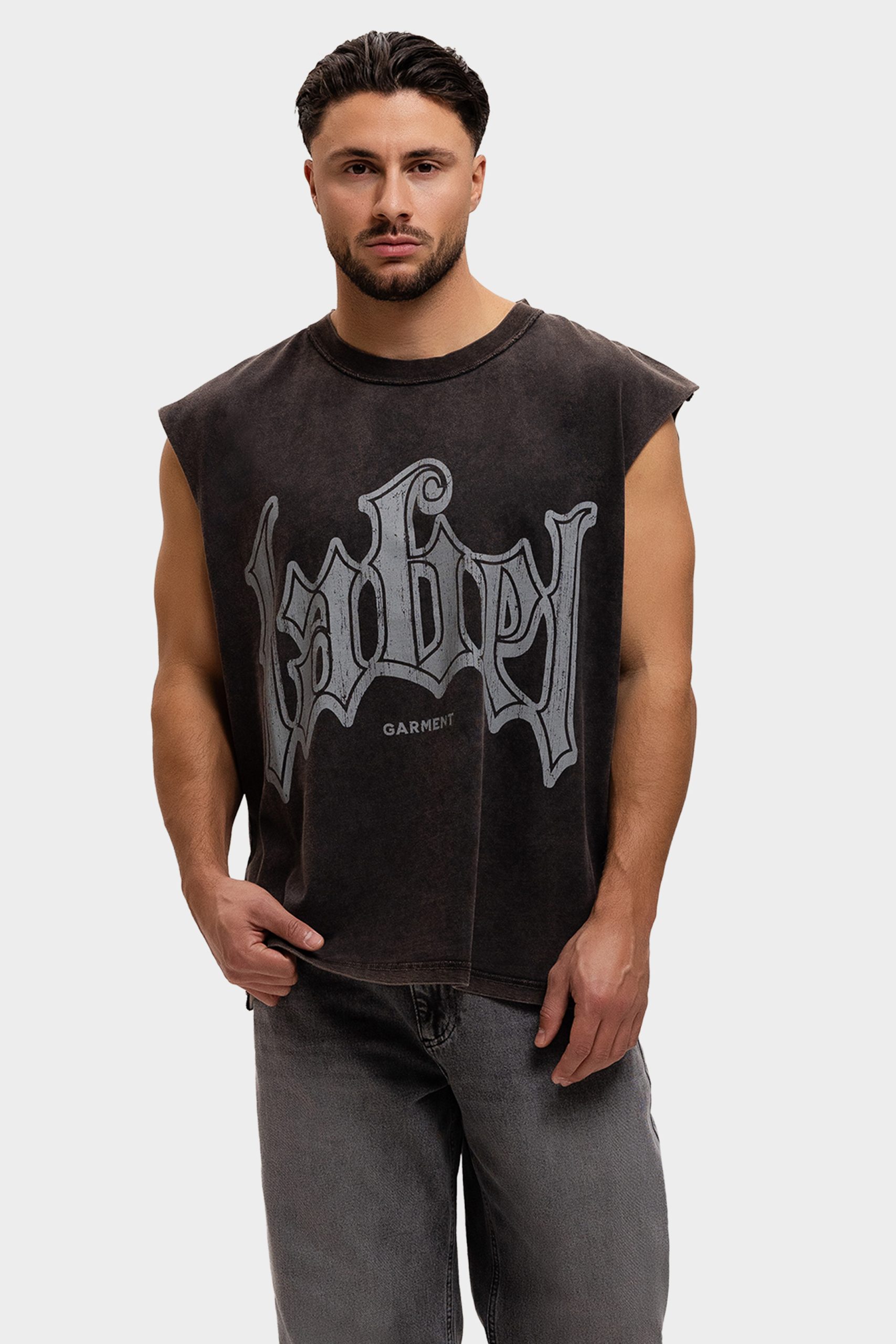 Label Garment Raw Sleeveless Shirt Heren Donkergrijs