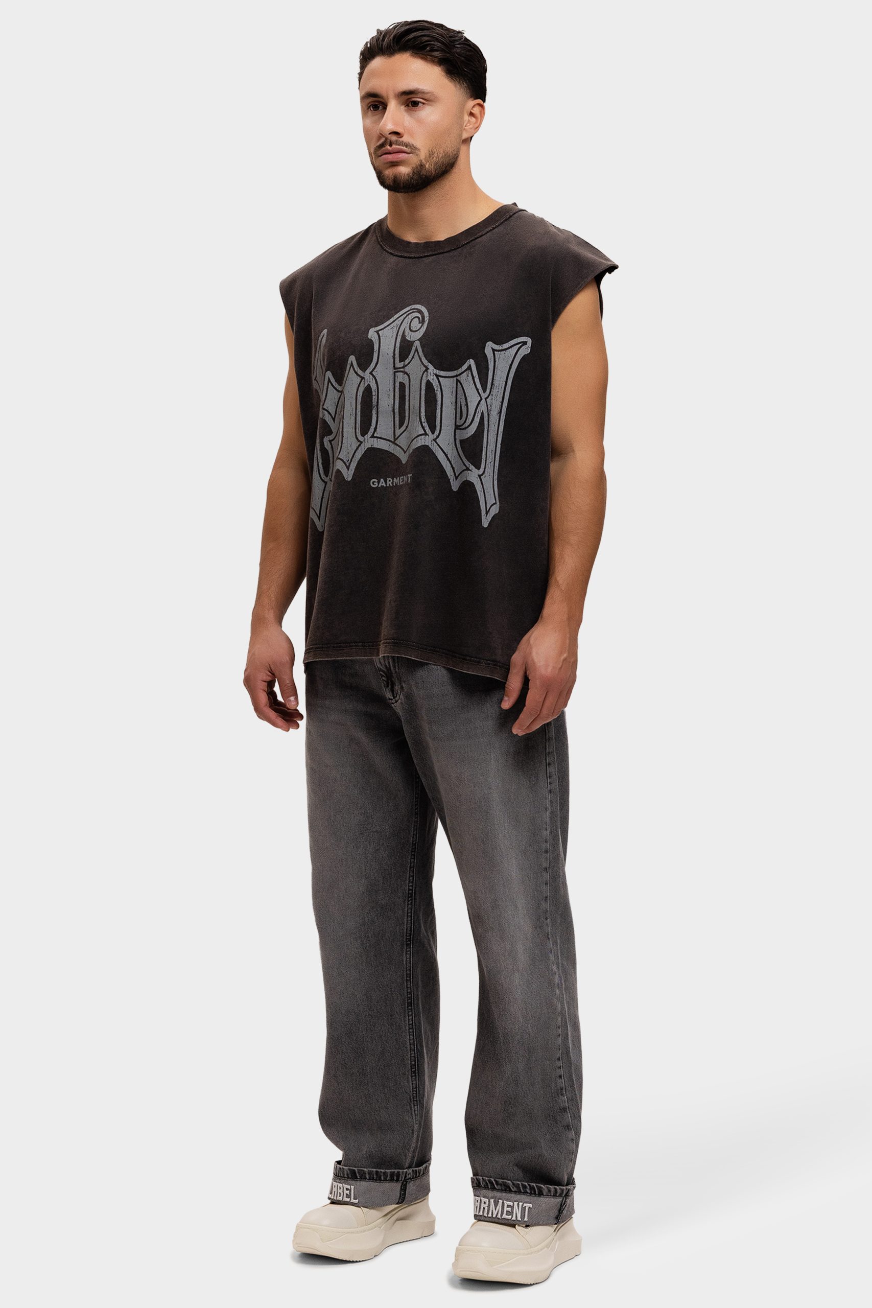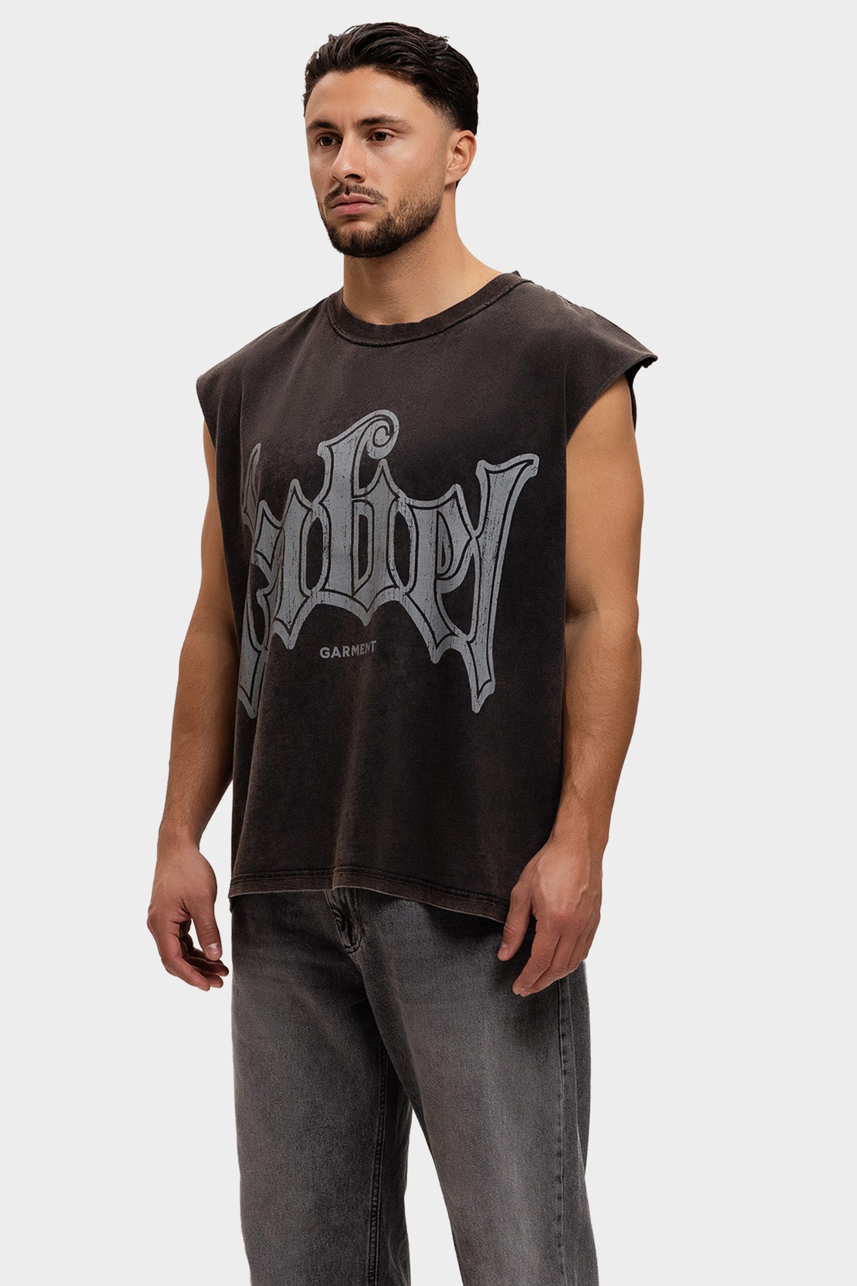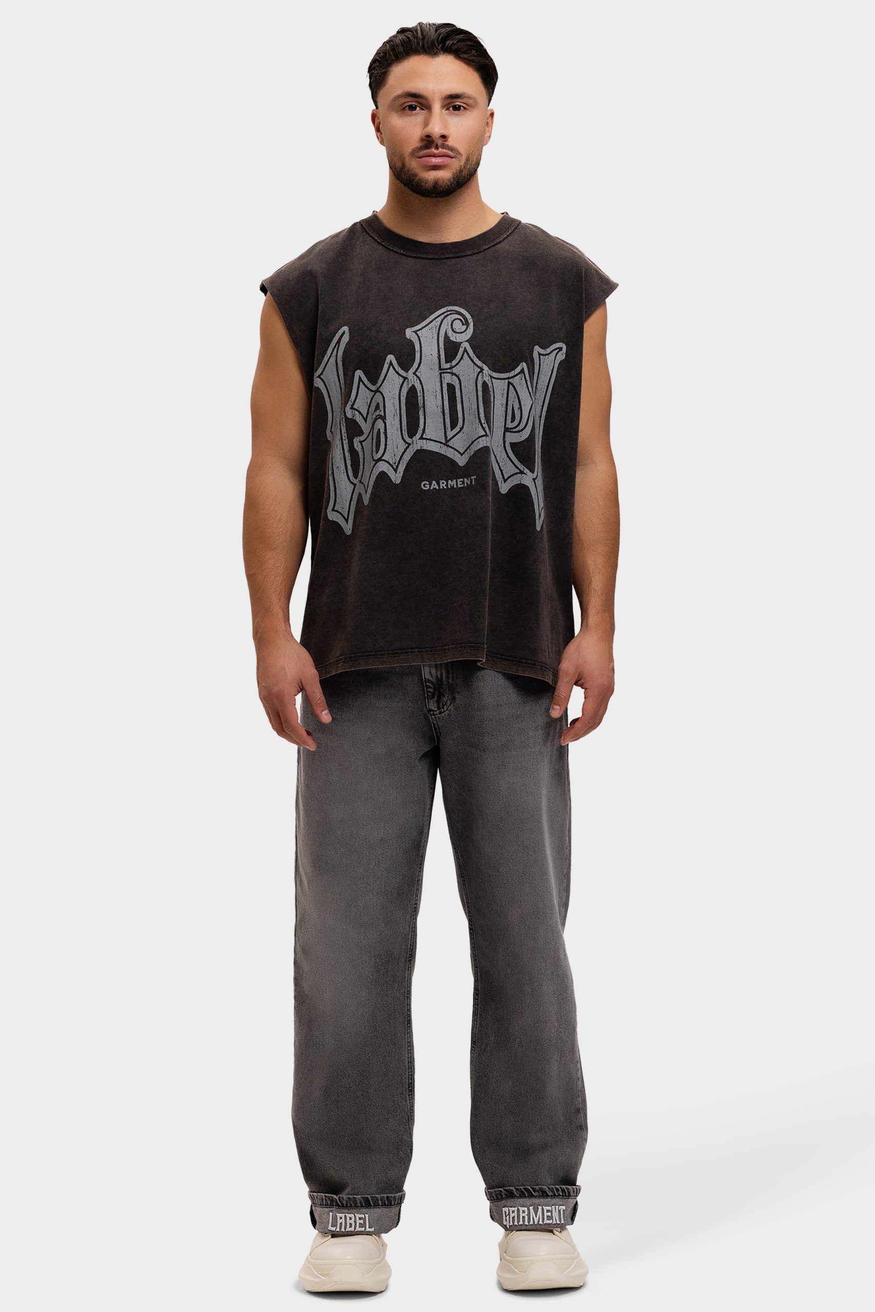 Label Garment Raw Sleeveless Shirt Heren Donkergrijs