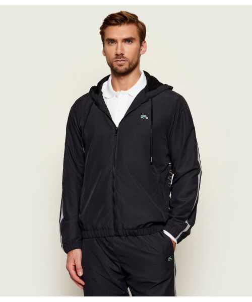 Het Lacoste Crocodile Print Trainingspak voor heren in het zwart is een must-have item voor het komende lente/zomerseizoen. Dit trainingspak heeft een capuchon en lange mouwen, waardoor het perfect is voor een sportieve look. De pasvorm is normaal en het materiaal is gemaakt van 100% polyester, wat zorgt voor een comfortabele en duurzame kwaliteit. Het trainingspak heeft een effen zwart patroon met een subtiele backprint van het iconische Lacoste krokodillenlogo. De ritssluiting en verschillende zakken, waaronder twee buitenzakken, twee zijzakken en zakken met rits, maken dit trainingspak zowel praktisch als stijlvol. Met dit Lacoste trainingspak ben je helemaal klaar voor een actieve dag!