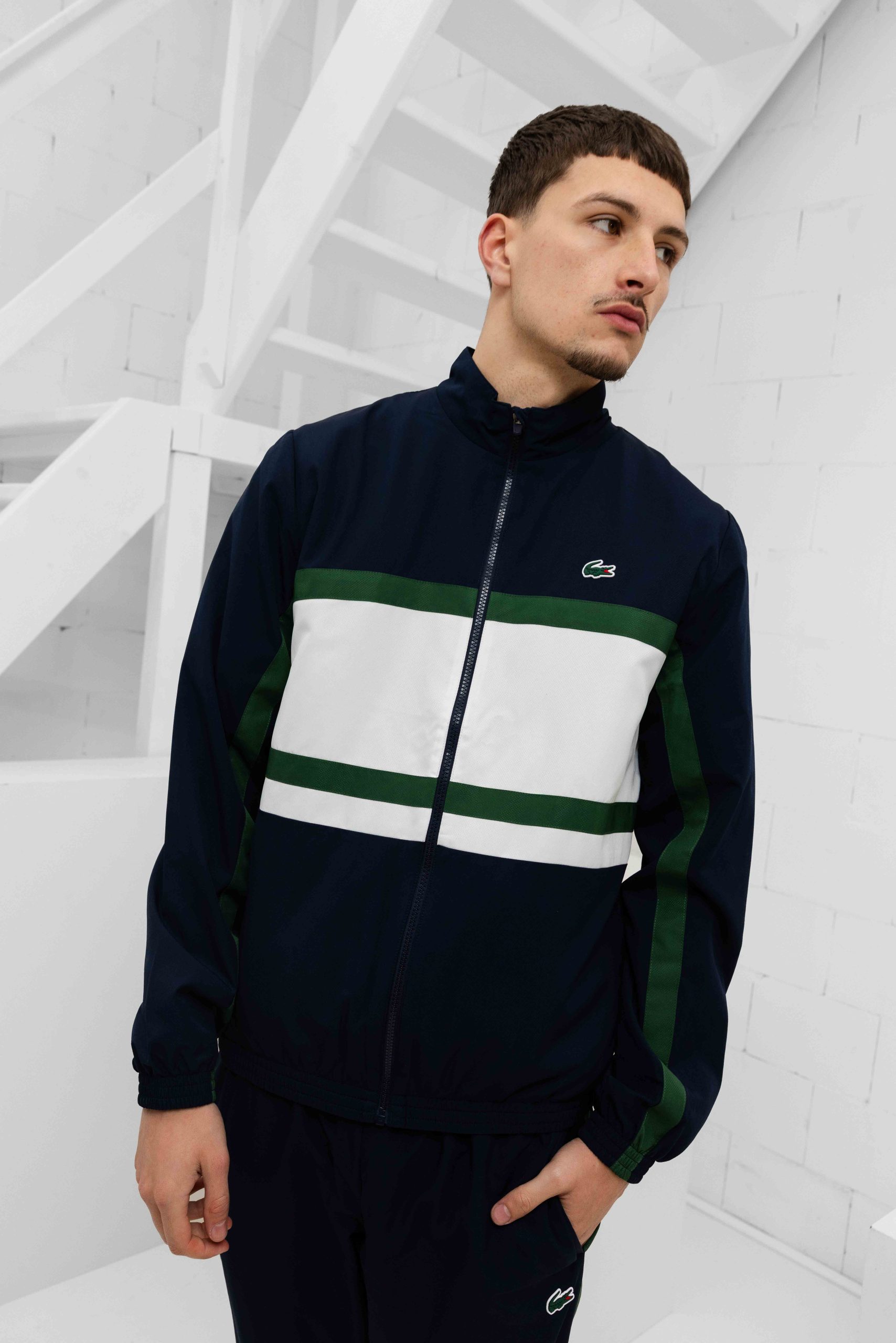 Het Lacoste Sport Trainingspak voor Heren in de kleuren donkerblauw, groen en wit is een must-have voor de Lente/Zomer collectie. Dit trainingspak is gemaakt van 100% Polyester en heeft een regular fit pasvorm. De lange mouwen en kraag zorgen voor extra comfort en warmte tijdens het sporten of relaxen. De colourblock print geeft dit trainingspak een trendy uitstraling. De elastische band en ritssluiting zorgen voor een goede sluiting en de twee buitenzakken en zakken met rits bieden voldoende opbergruimte voor kleine spullen. Met dit Lacoste trainingspak ben je helemaal klaar voor een actieve dag!