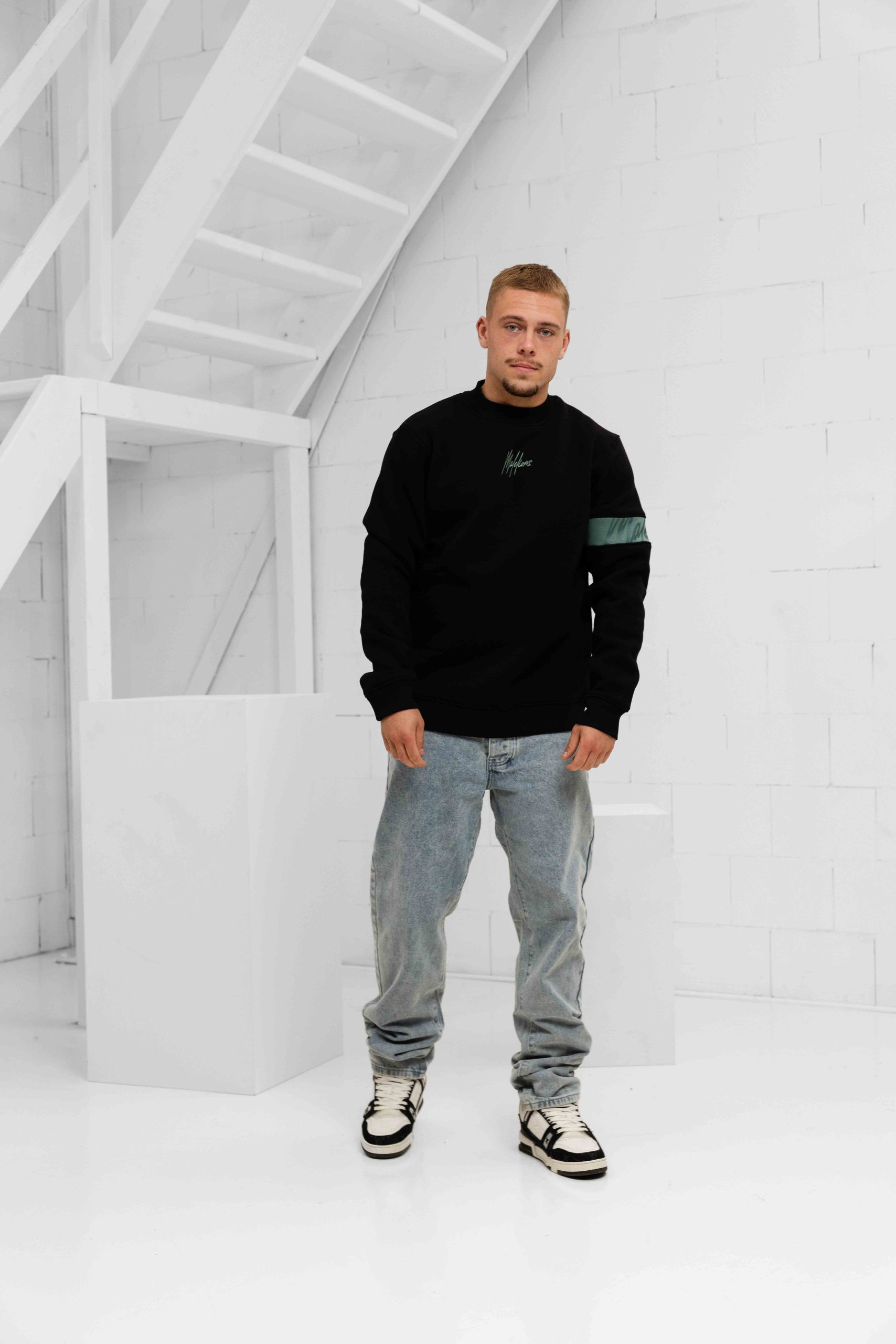 Heren > Malelions Heren > Malelions Captain Sweater Heren Zwart/Lichtblauw