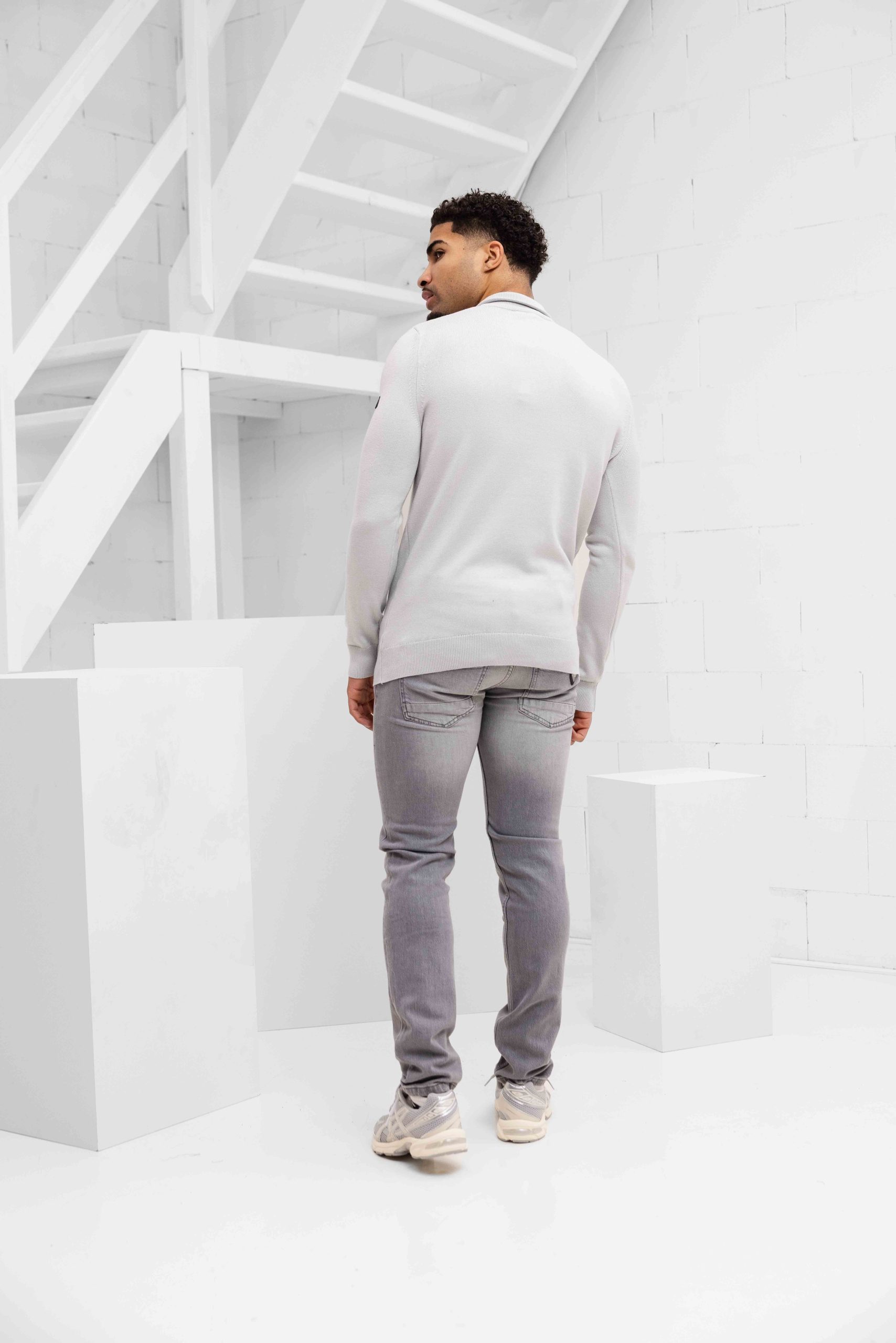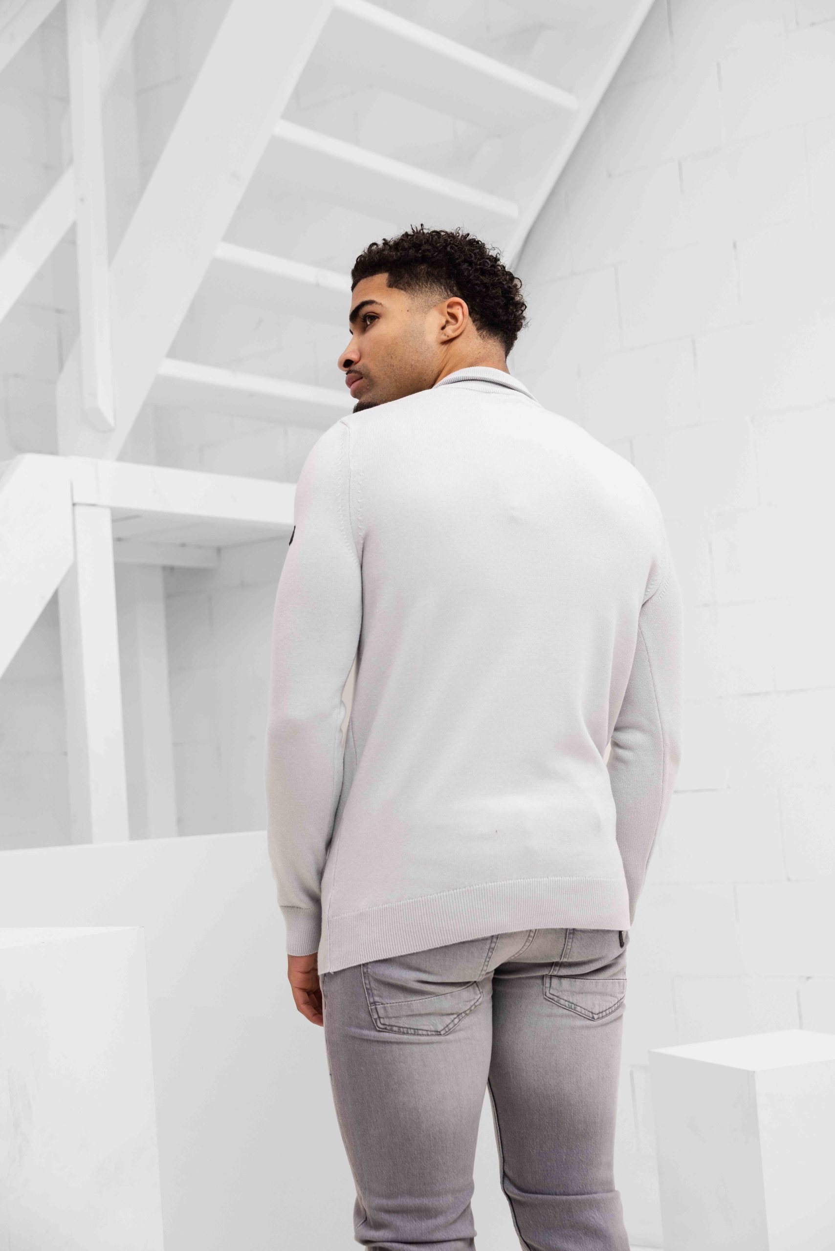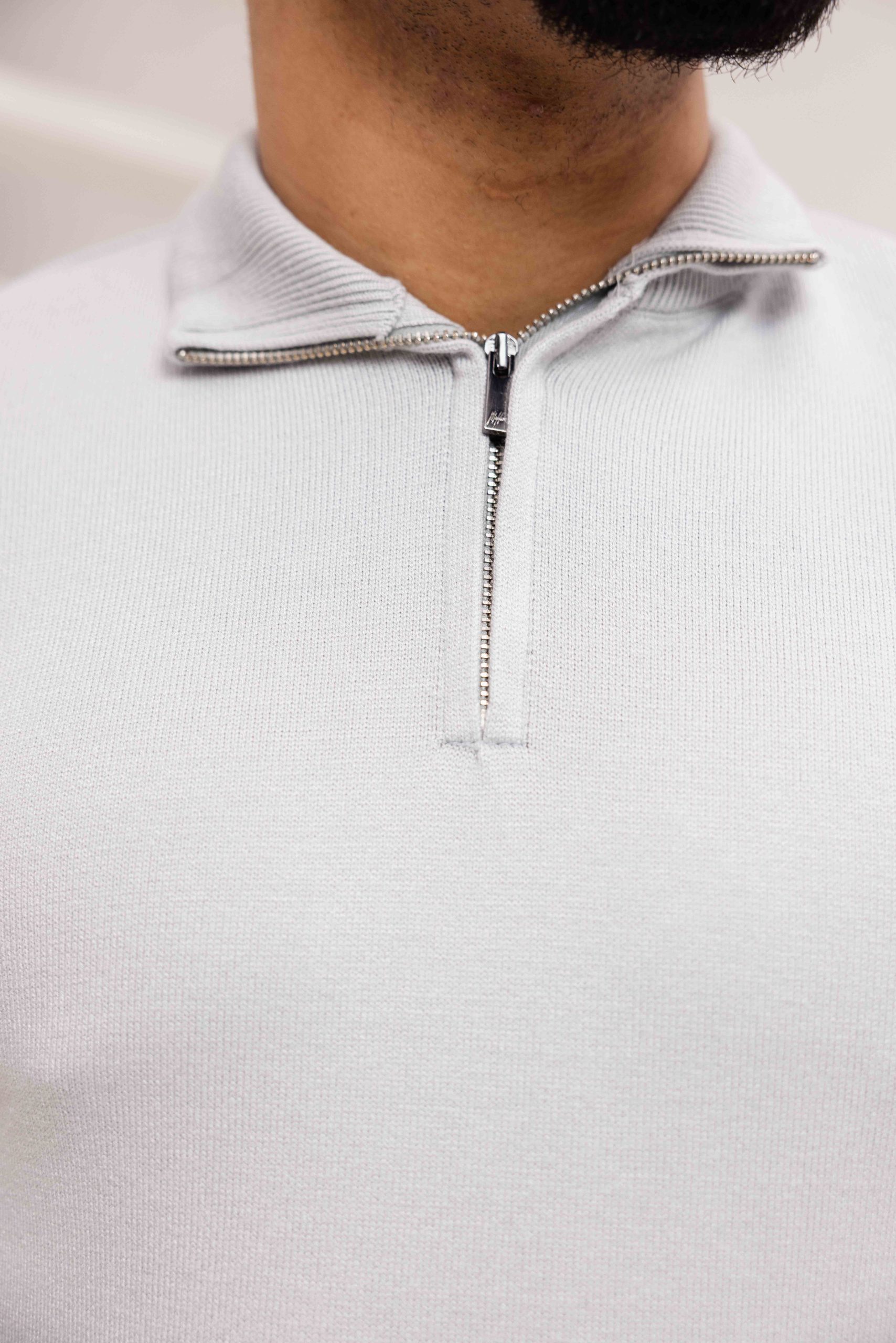 Knitted Quarter Zip Sweater Heren Lichtgrijs