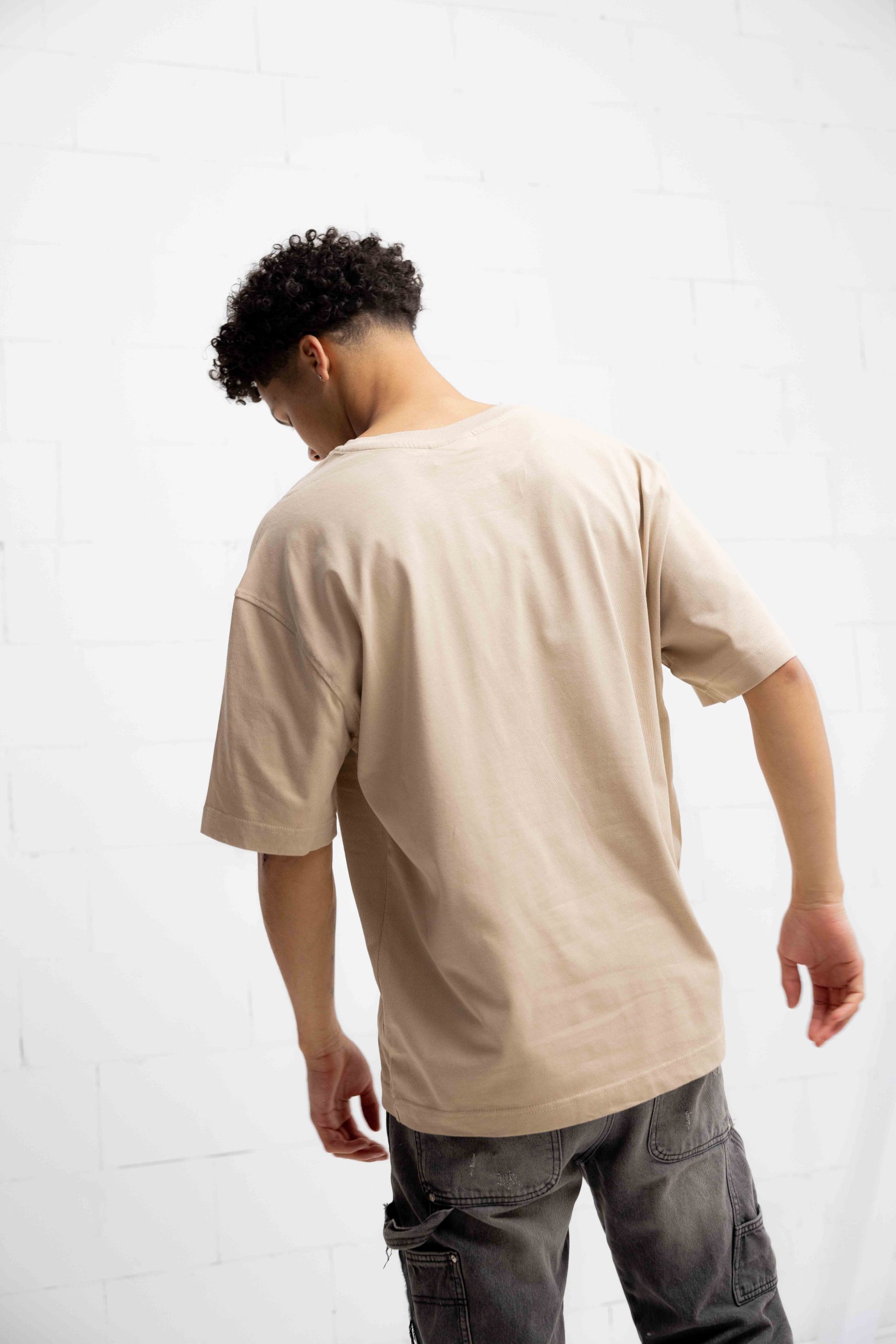 Script Loose Fit T-Shirt Unisex Beige