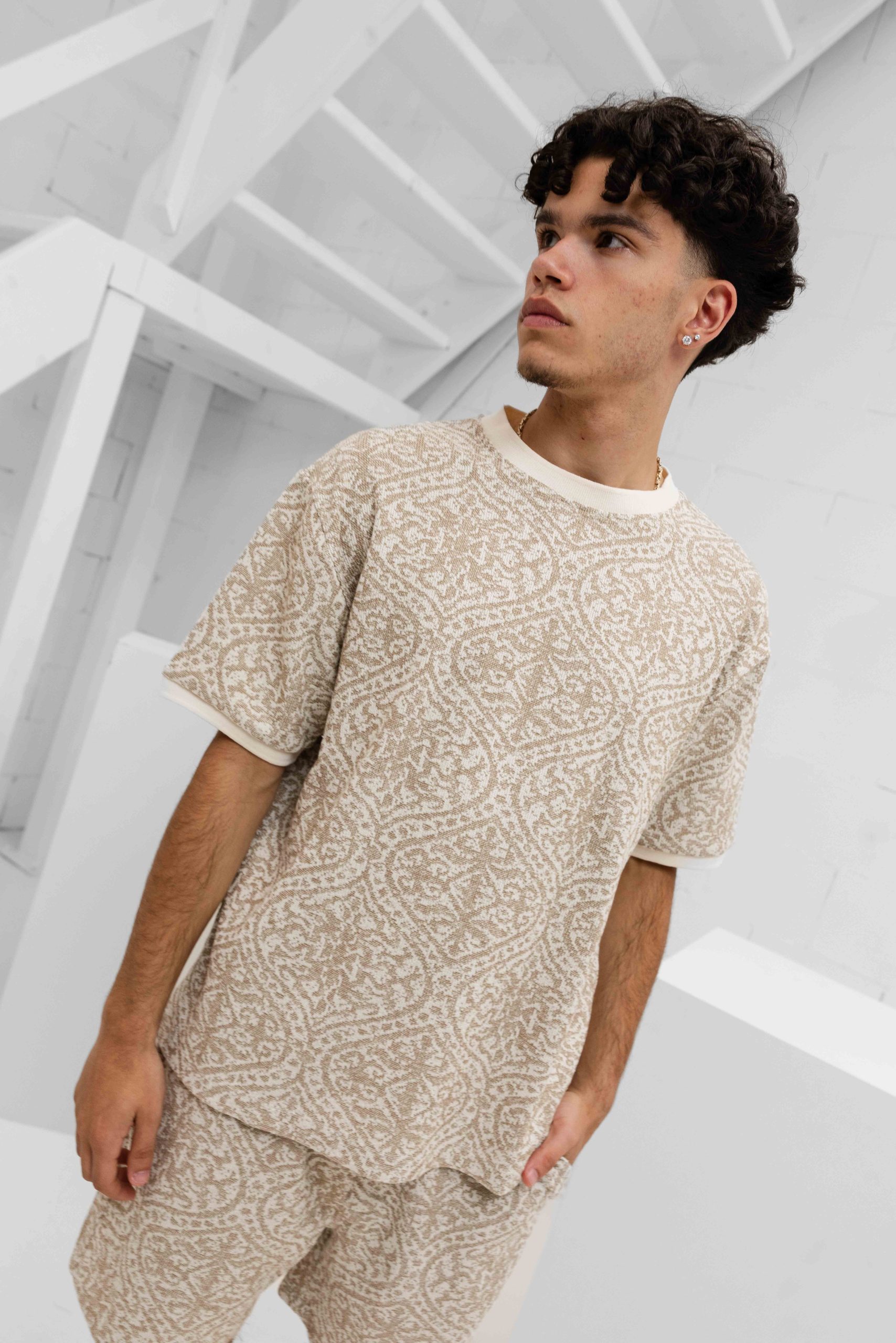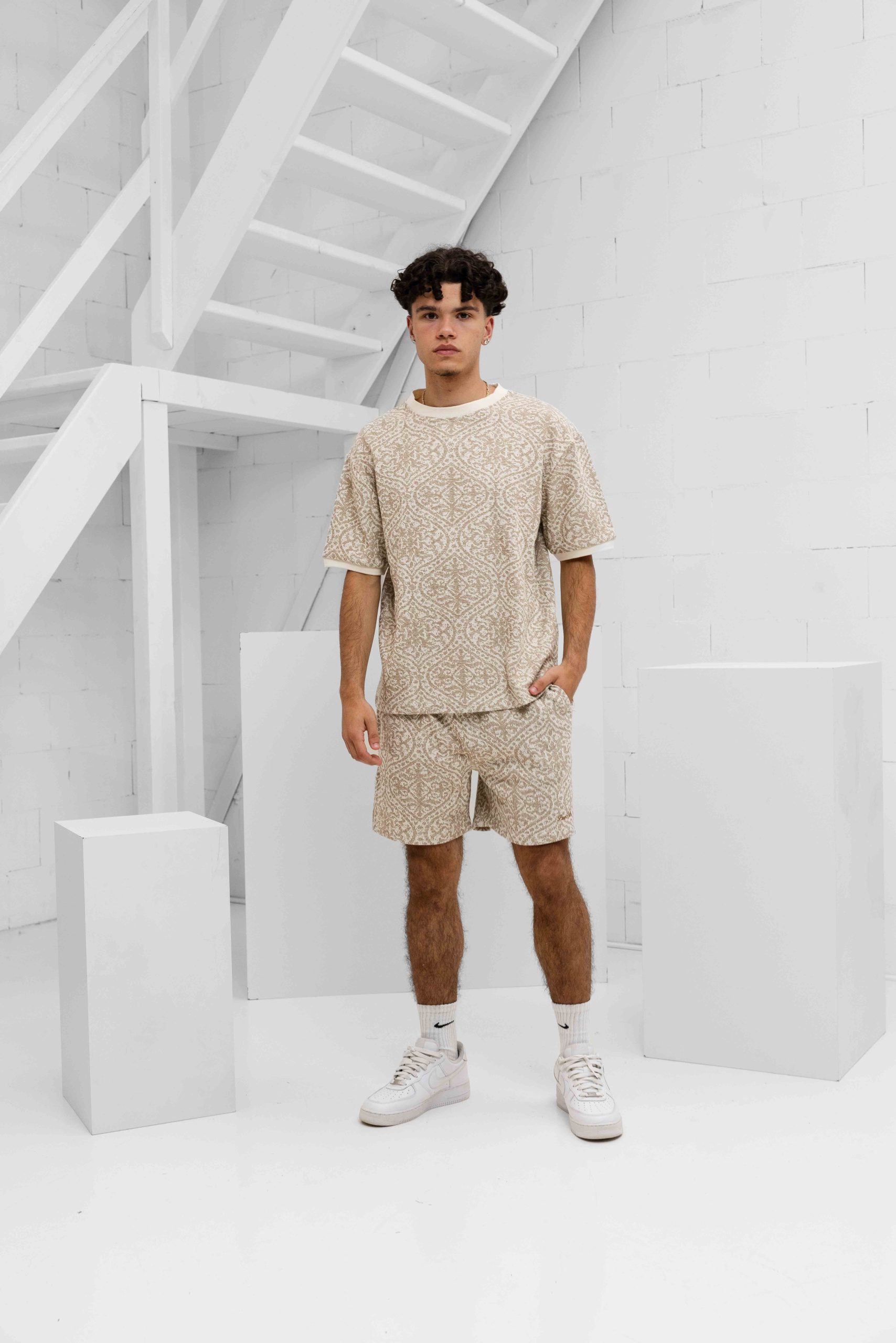 Pure Path Jacquard Set Heren Bruin/Wit