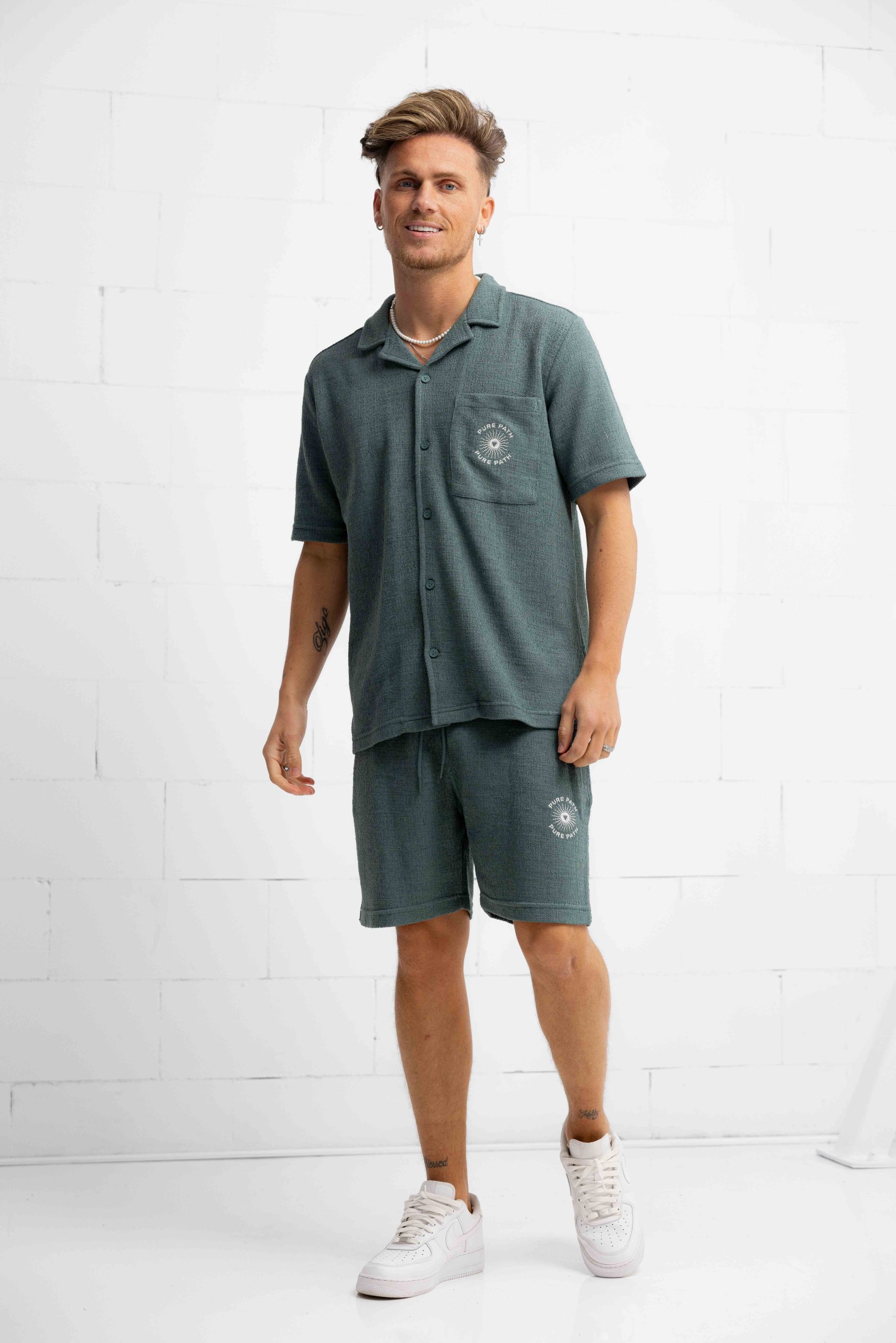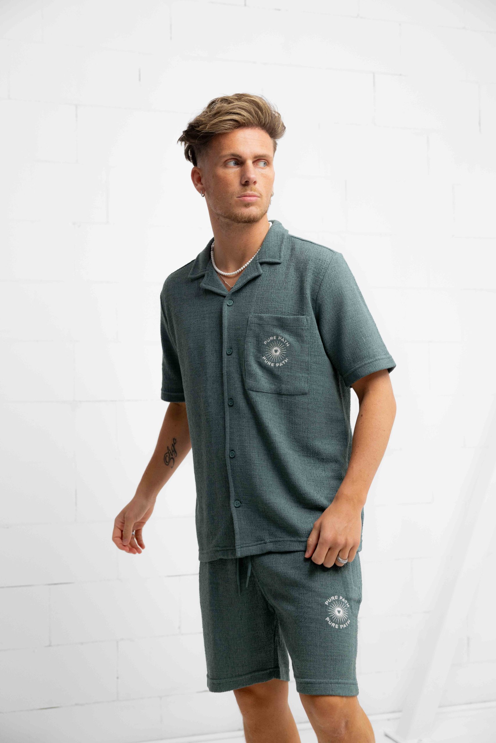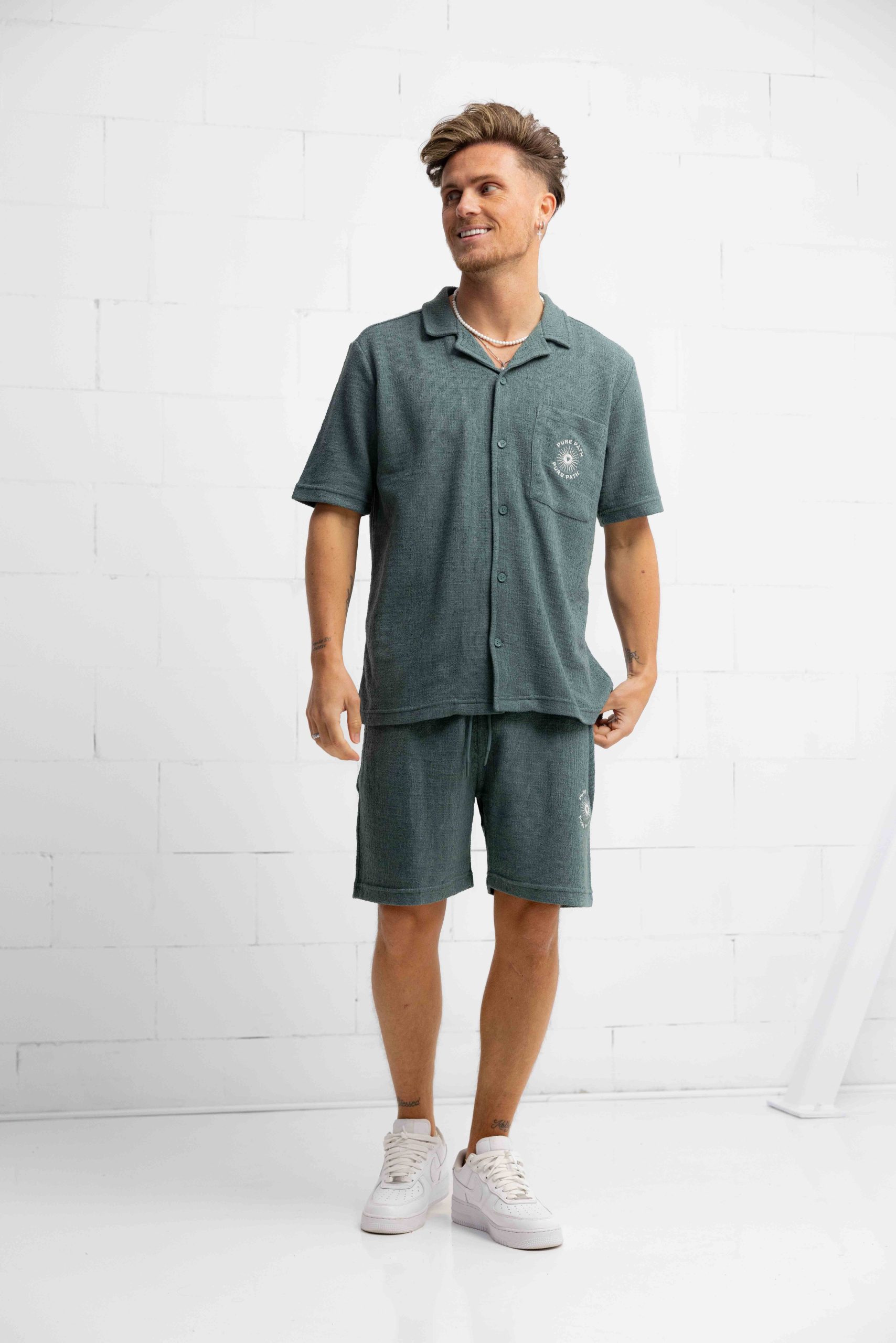 Pure Path Bouclé Shortsleeve T-Shirt Heren Groen