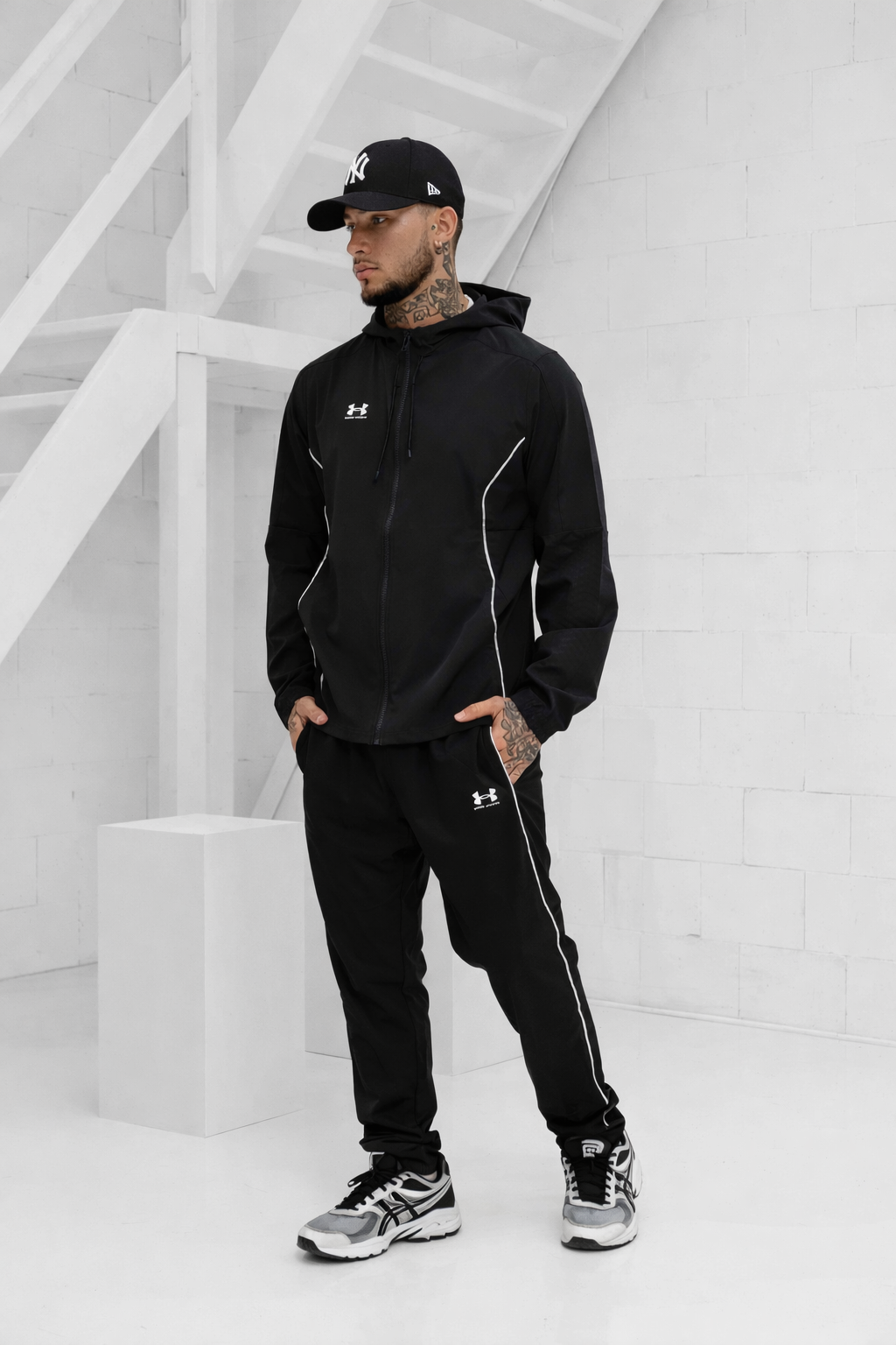 Het Under Armour Challenger Pro Trainingspak voor heren in zwart/wit is perfect voor de lente/zomer collectie. Dit trainingspak heeft een capuchon en lange mouwen, waardoor je altijd warm en comfortabel blijft tijdens het sporten. De pasvorm is normaal en het materiaal bestaat uit 87% polyester en 13% elastaan, waardoor het pak stretchy en ademend is. De zwarte kleur en het effen patroon zorgen voor een strakke en sportieve uitstraling. Het trainingspak heeft twee buitenzakken en twee zijzakken, waardoor je al je essentials veilig kunt opbergen. De sluiting bestaat uit een elastische band, koord en ritssluiting, waardoor je het pak gemakkelijk aan en uit kunt trekken. Kortom, het Under Armour Challenger Pro Trainingspak is de ideale keuze voor elke sportieve man!