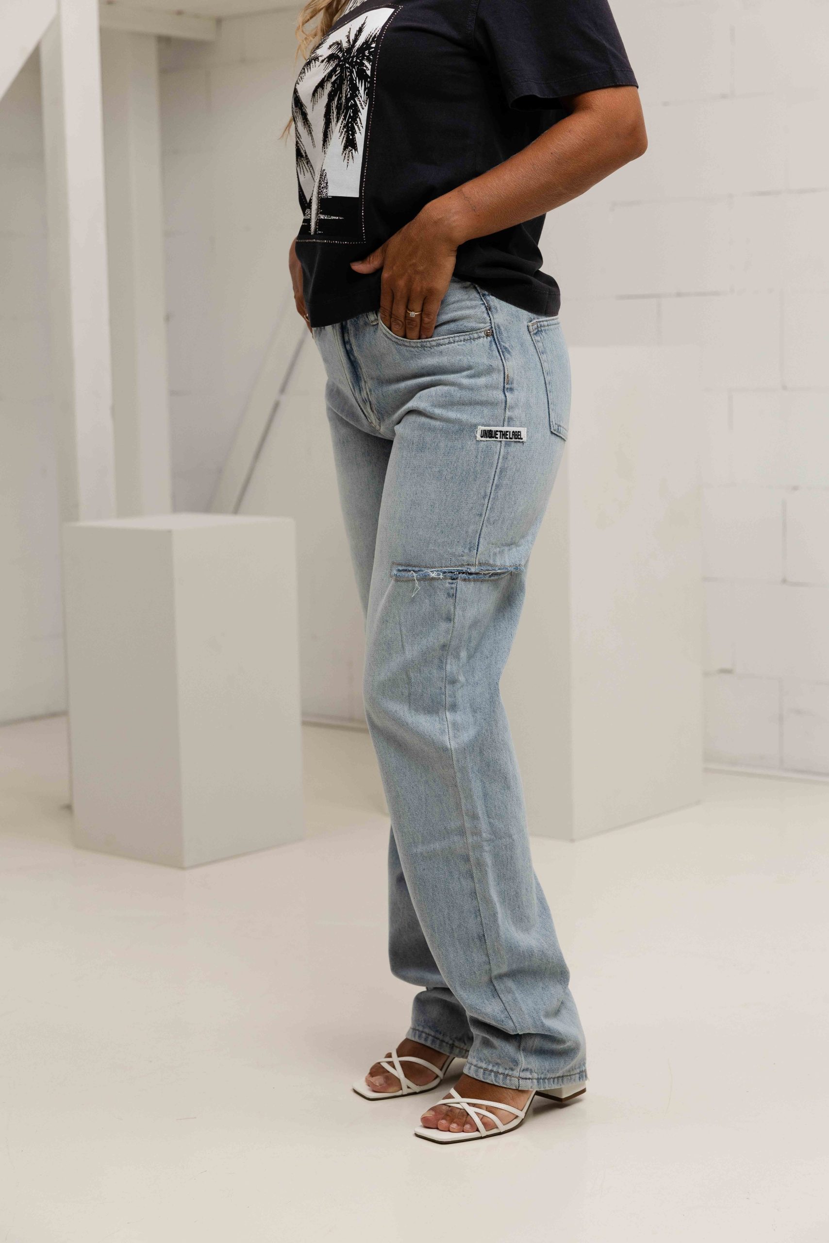 Unique The Label Remi Mid Waist Jeans Dames Lichtblauw